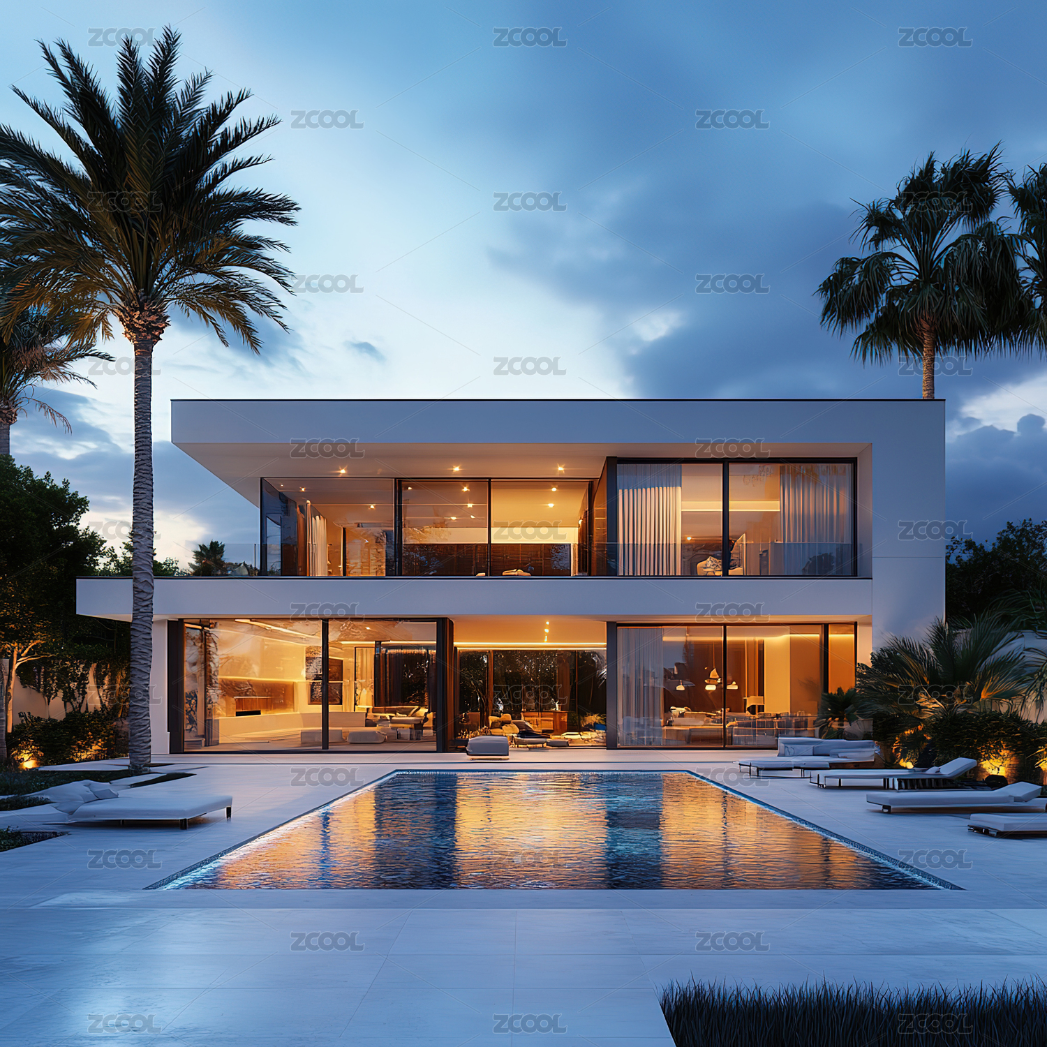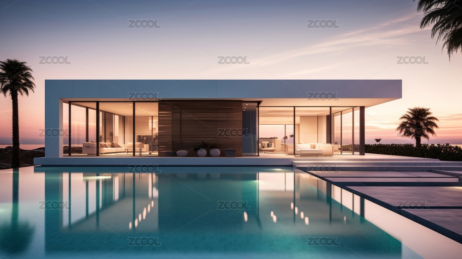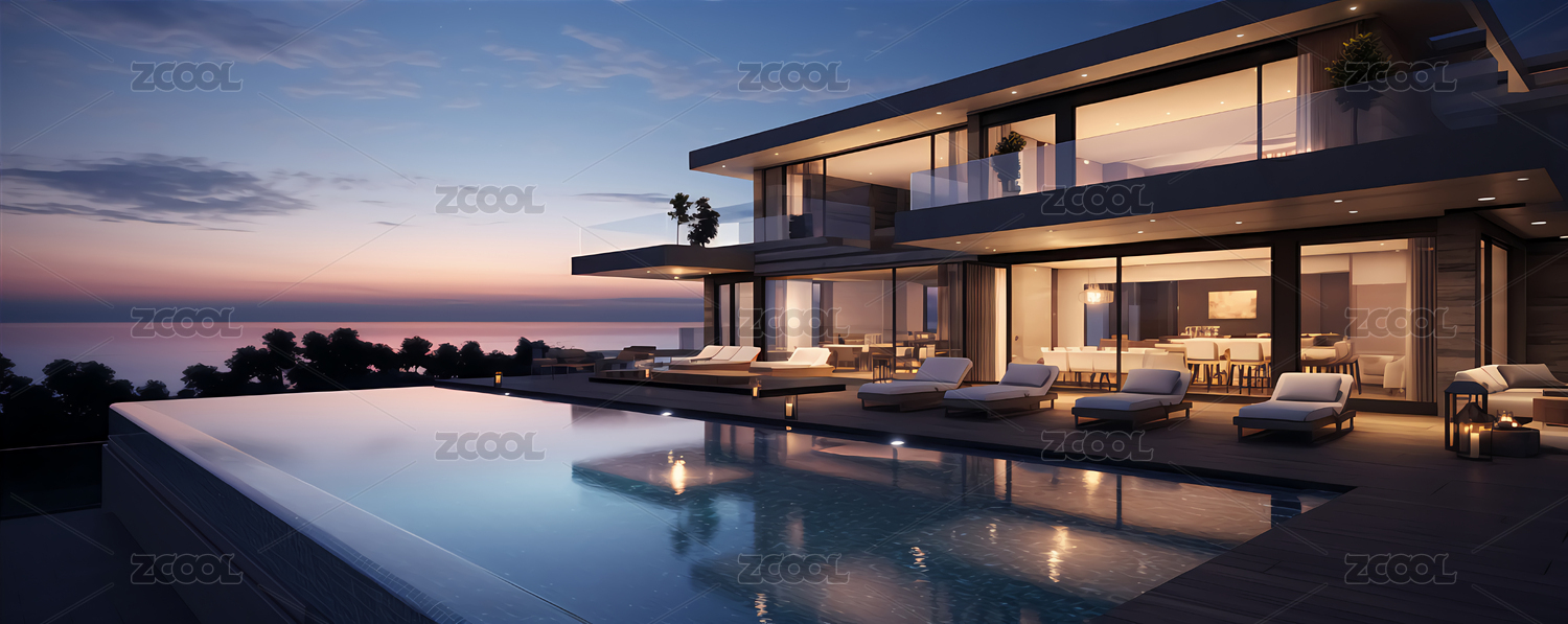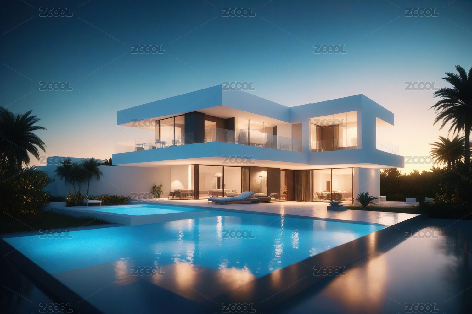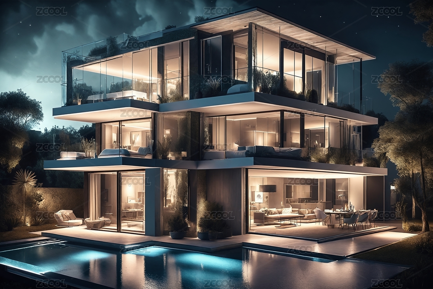 现代,豪宅,游泳池,夜景,灯光,建筑,设计,房屋,屋顶,玻璃