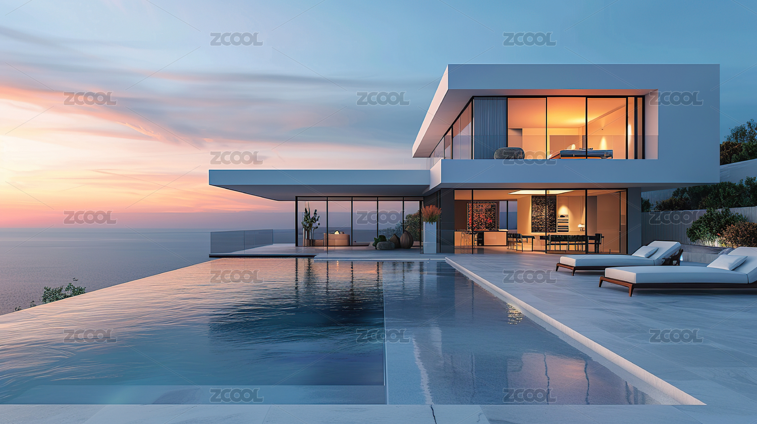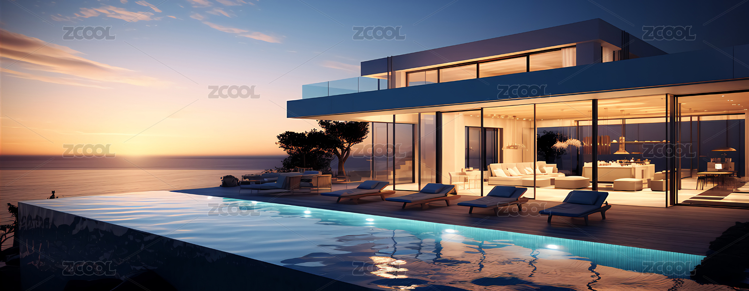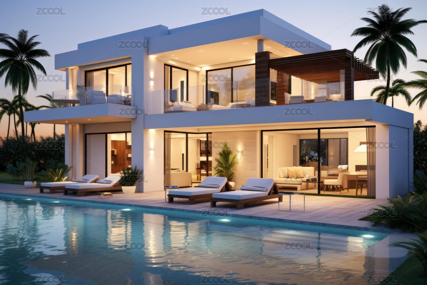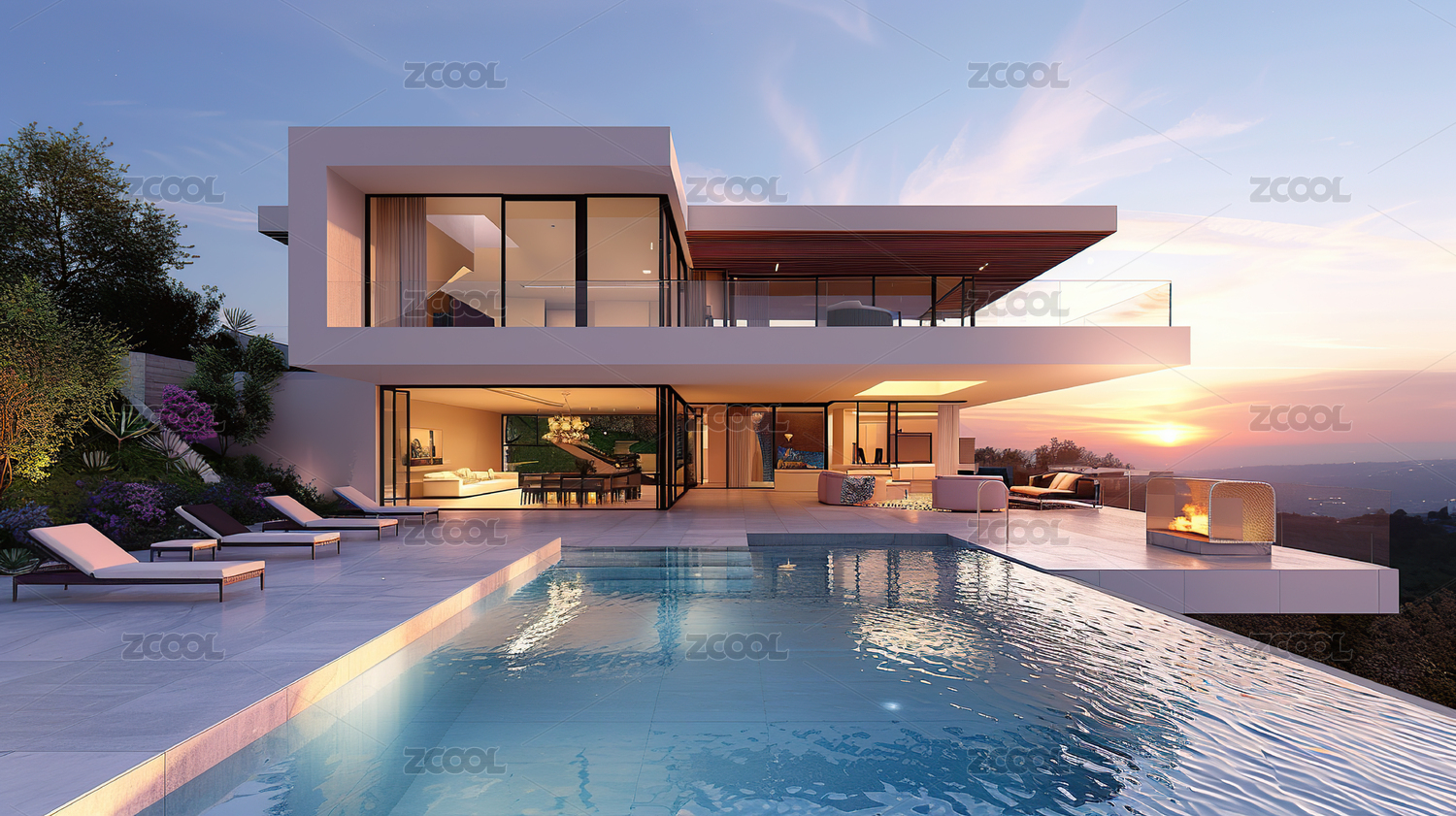 现代,豪宅,游泳池,夜景,灯光,建筑,设计,房屋,屋顶,玻璃