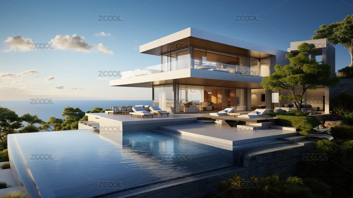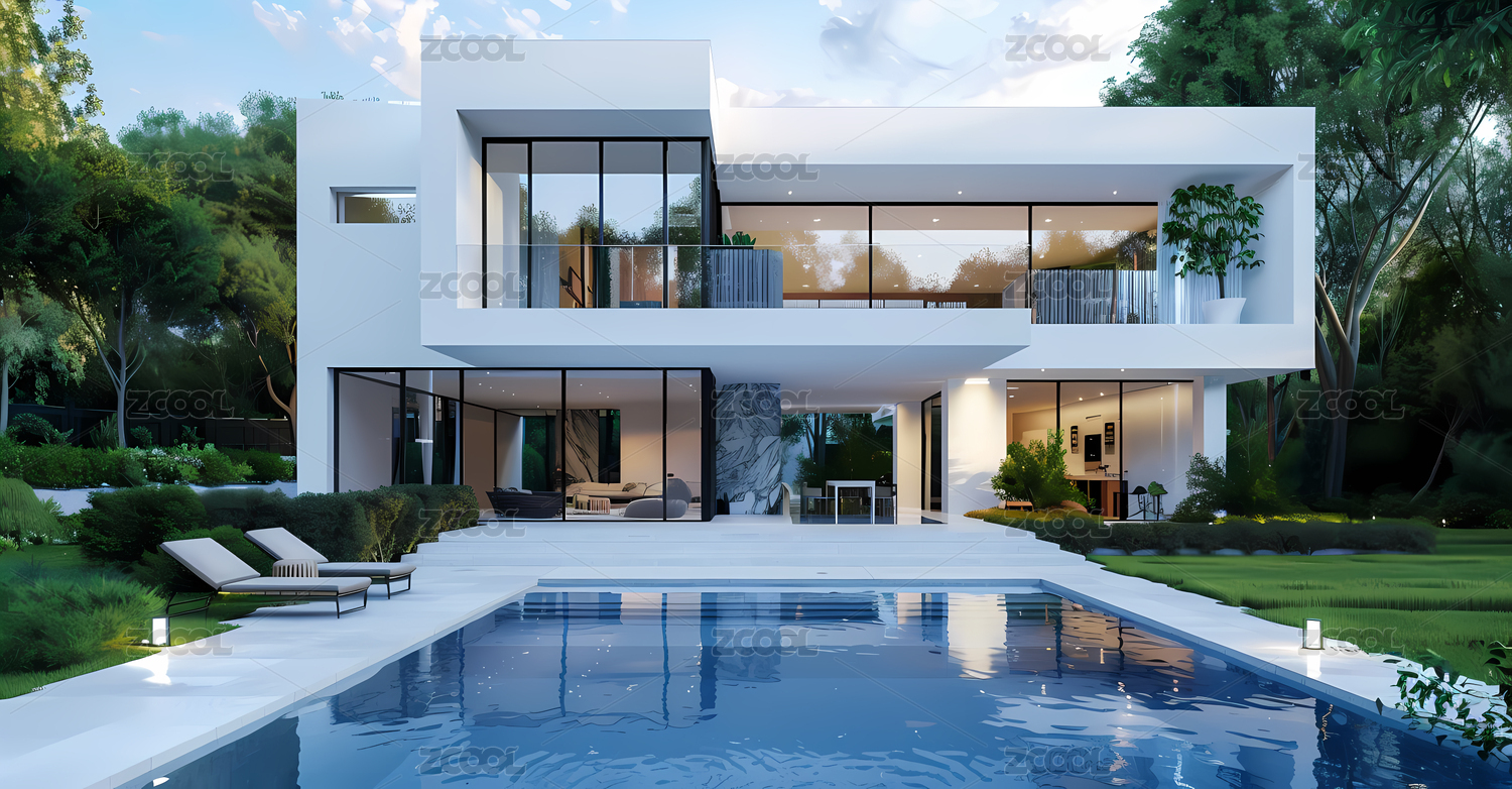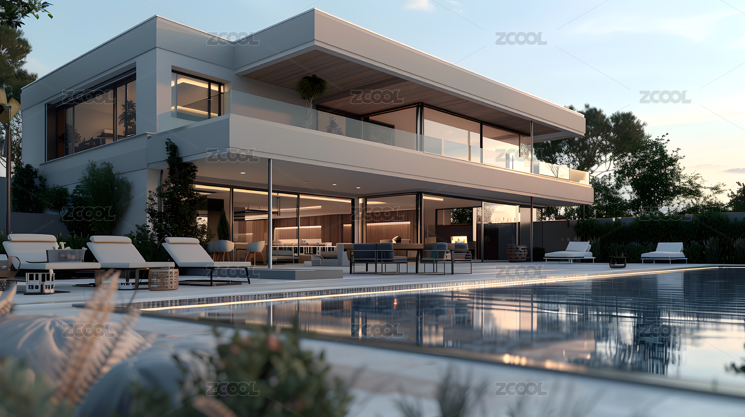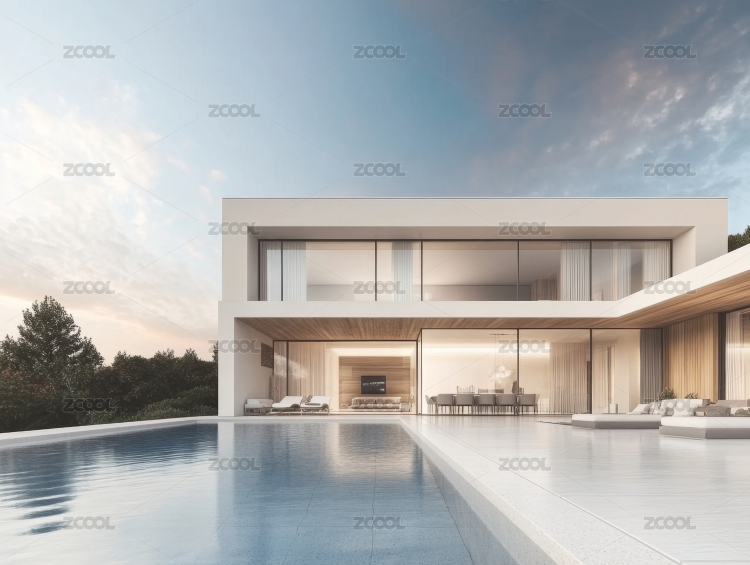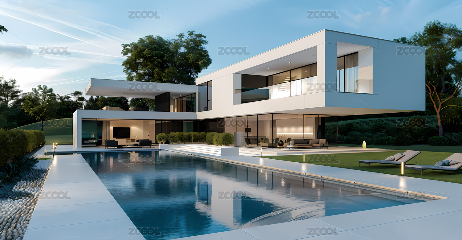 现代,豪宅,游泳池,夜景,灯光,建筑,设计,房屋,屋顶,玻璃