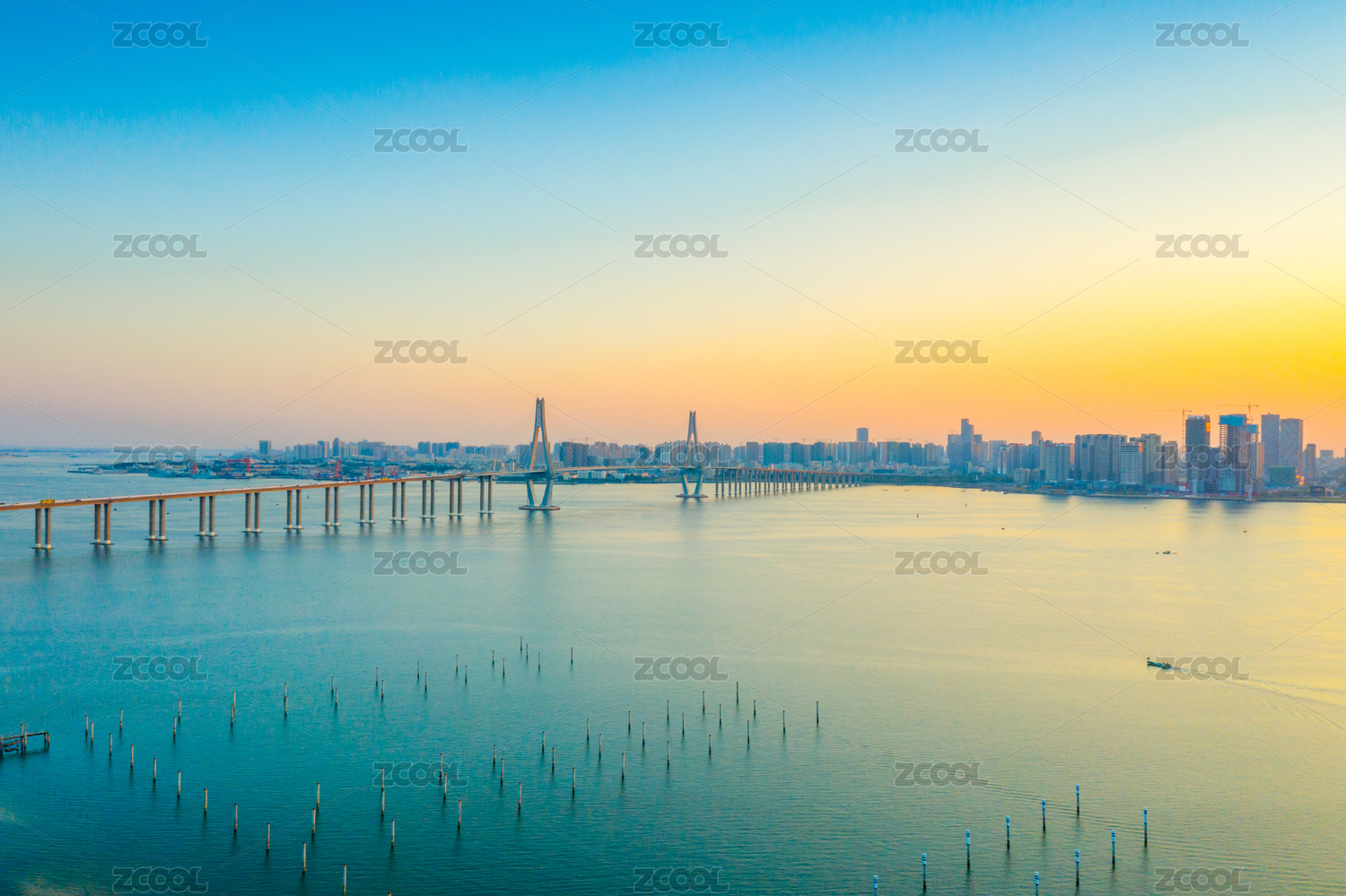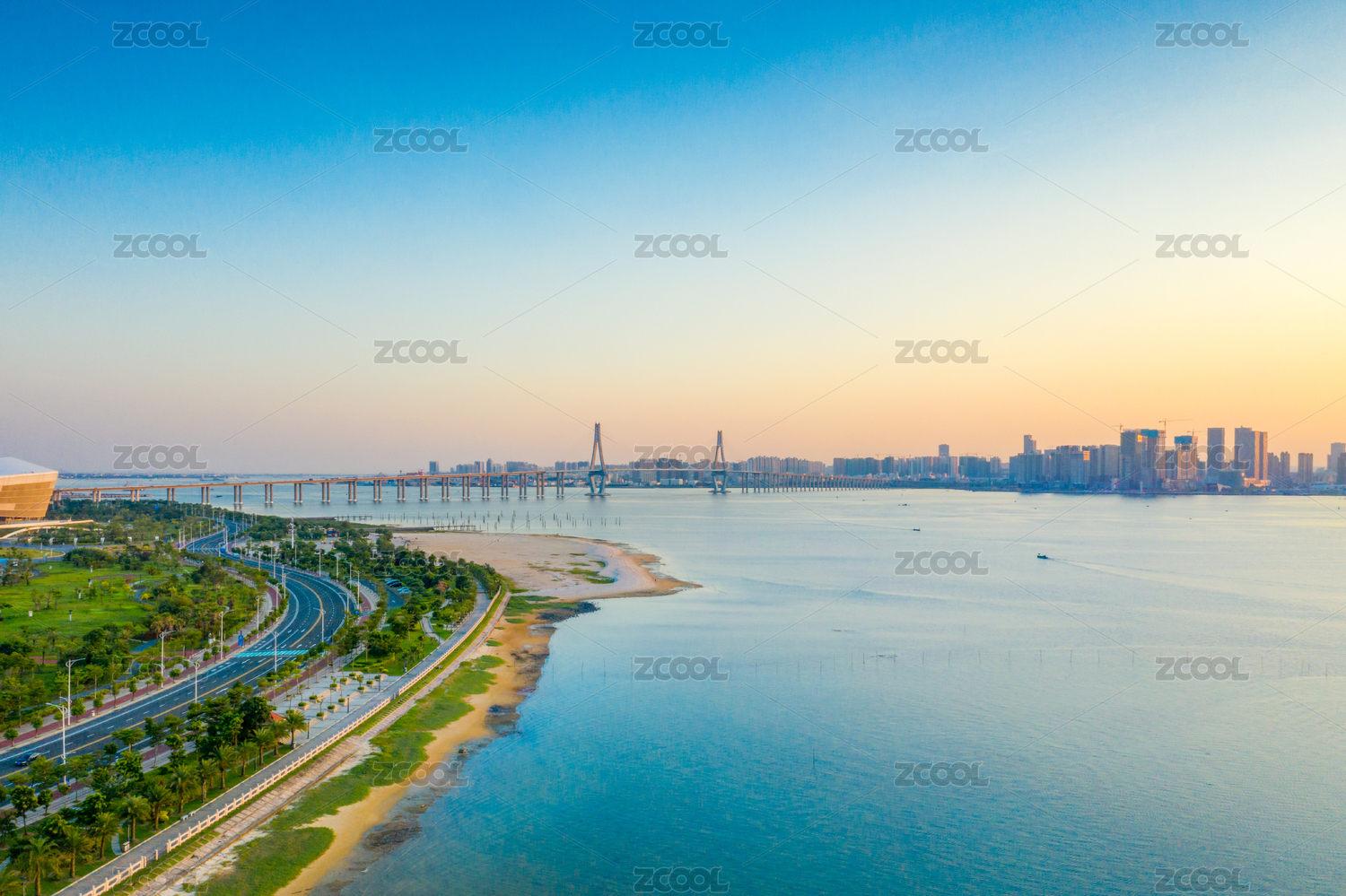 航拍中国澳门西湾大桥横跨前山水道入海口