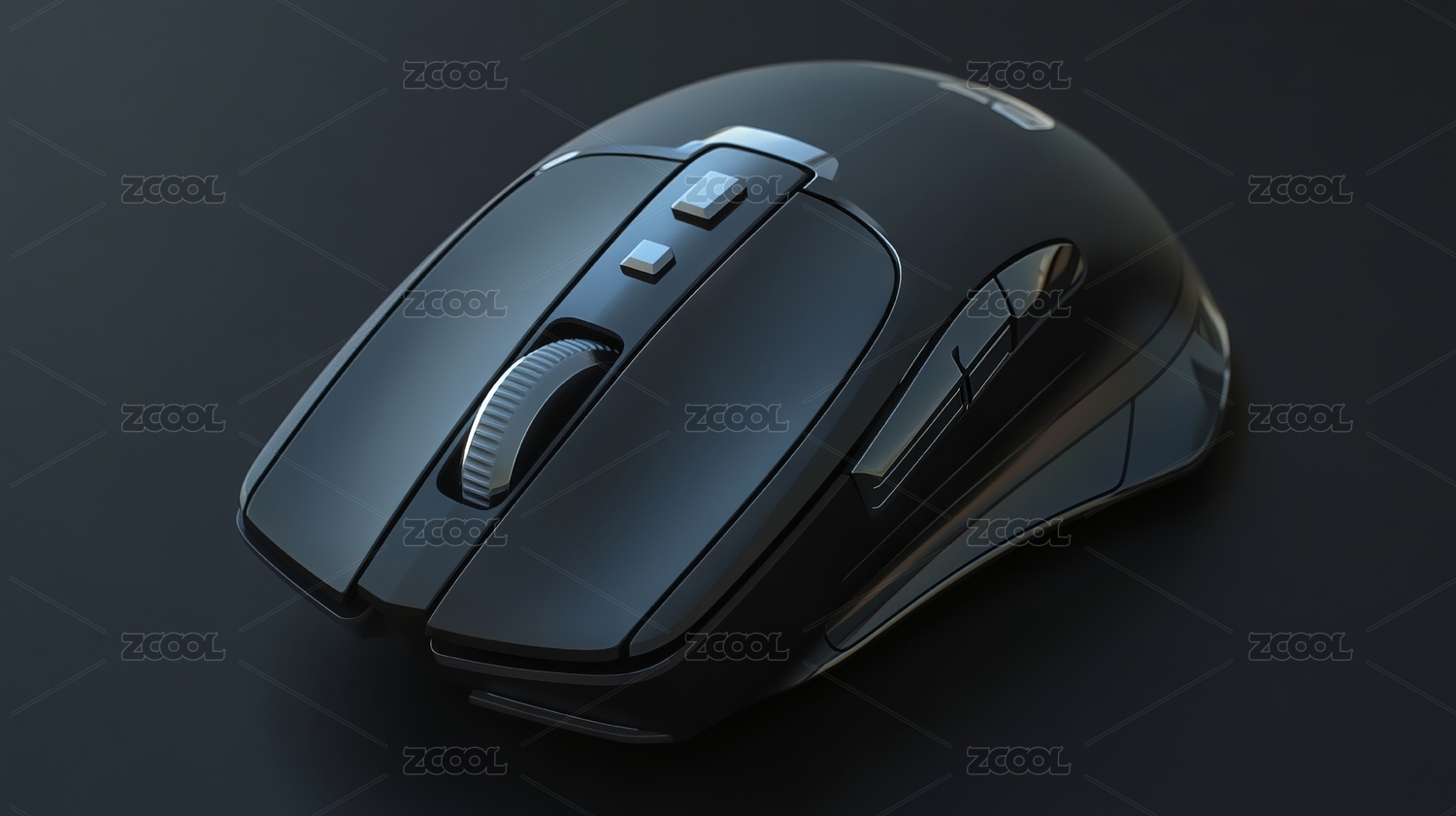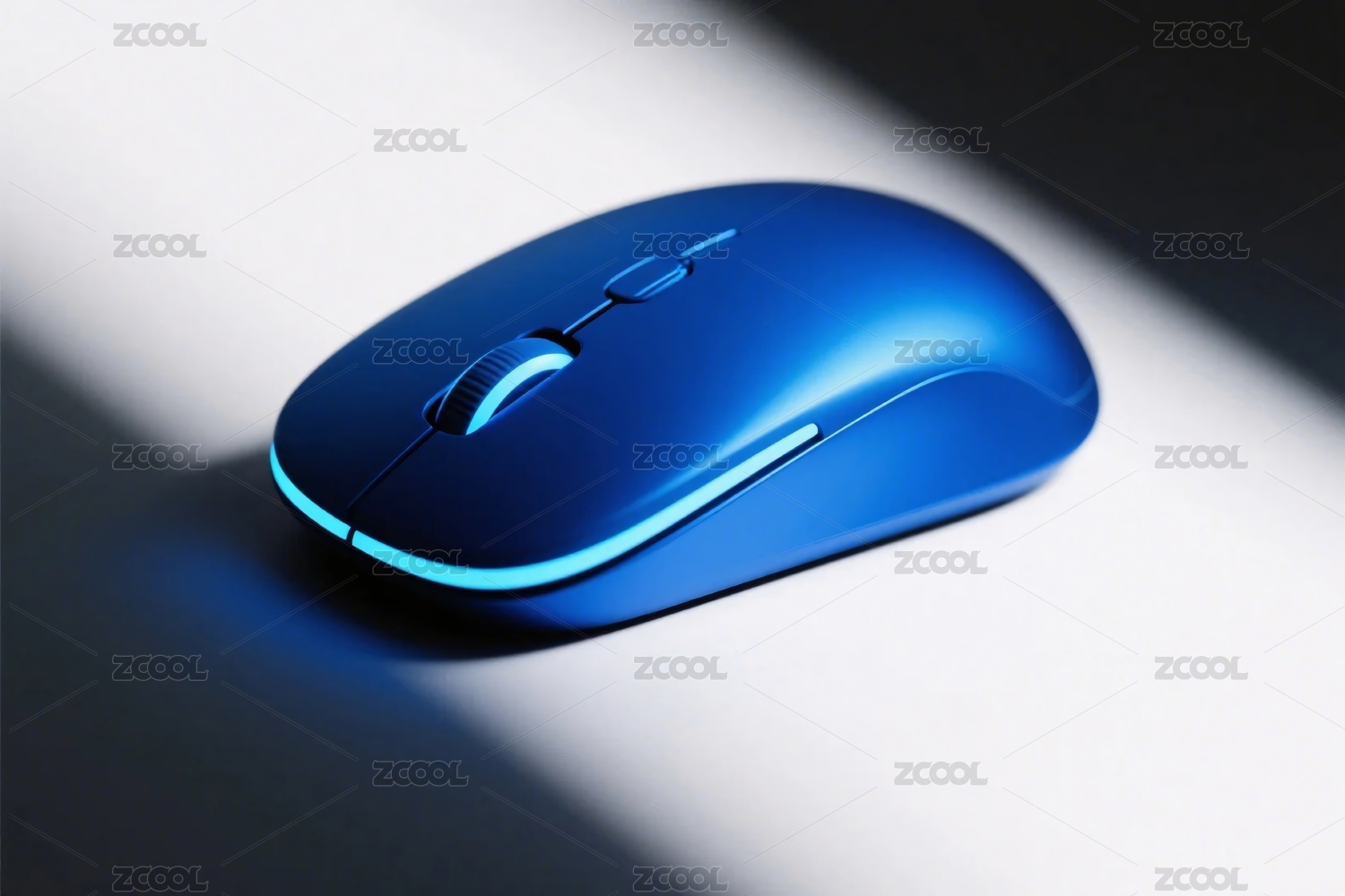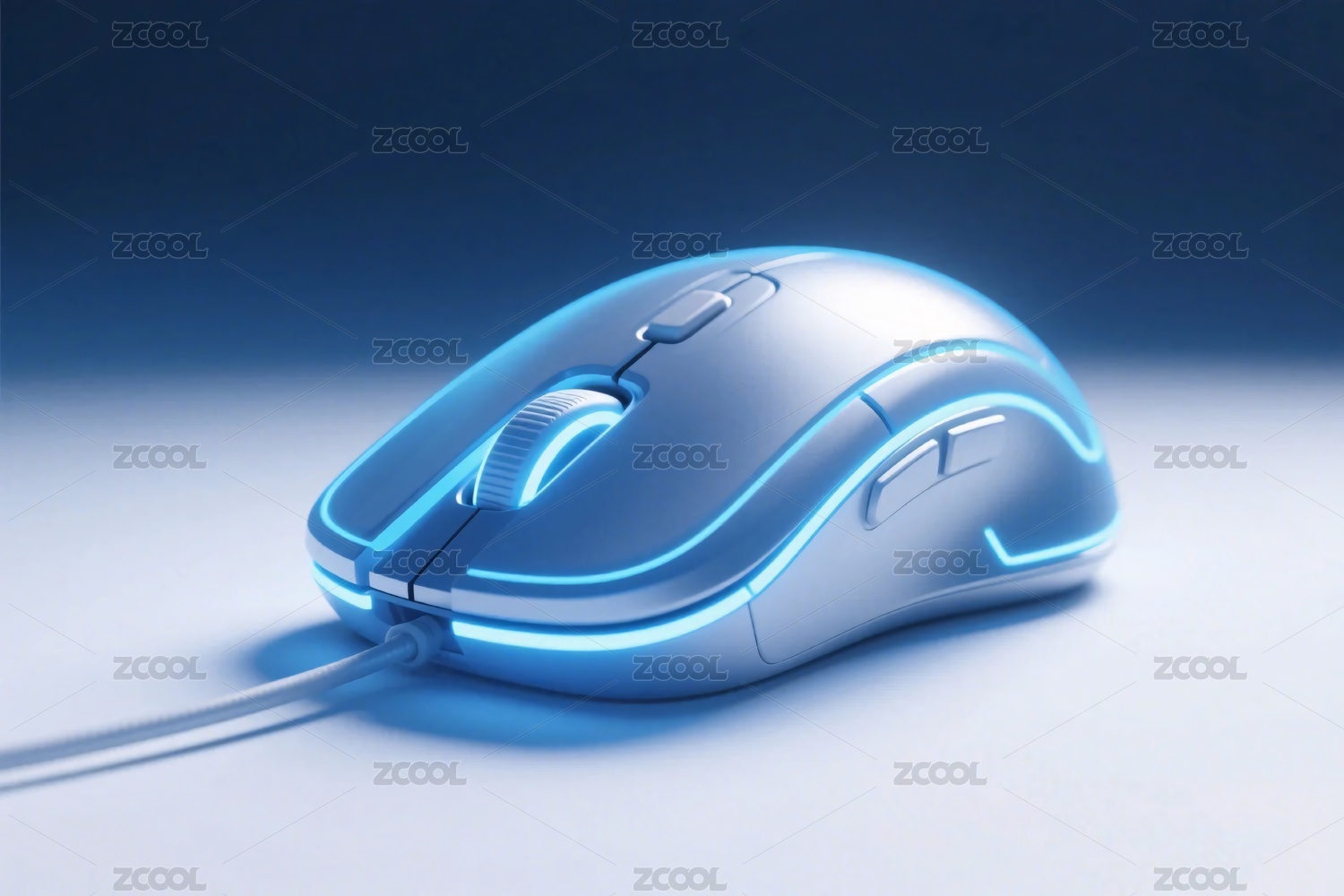 鼠标,浅蓝色,反光效果,装饰闪光点,滚轮,方向键,连接线,桌面,水滴,模糊背景