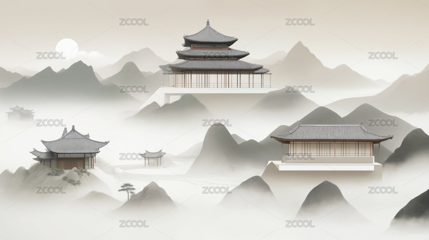 仙境中的古建筑主题