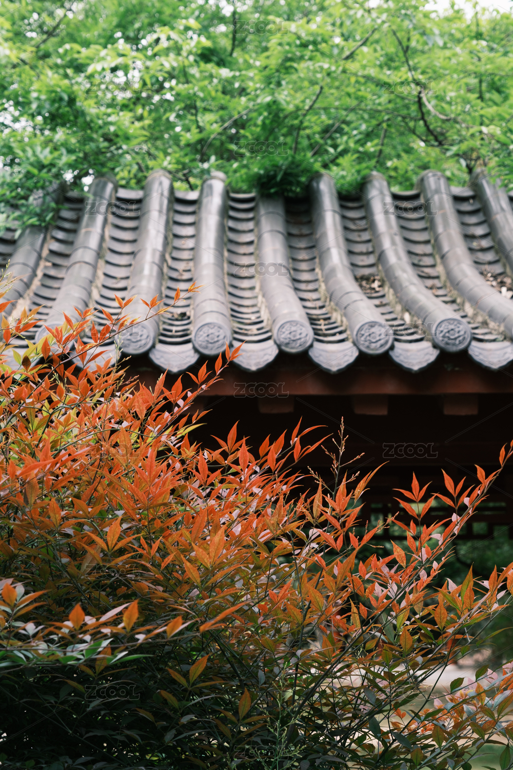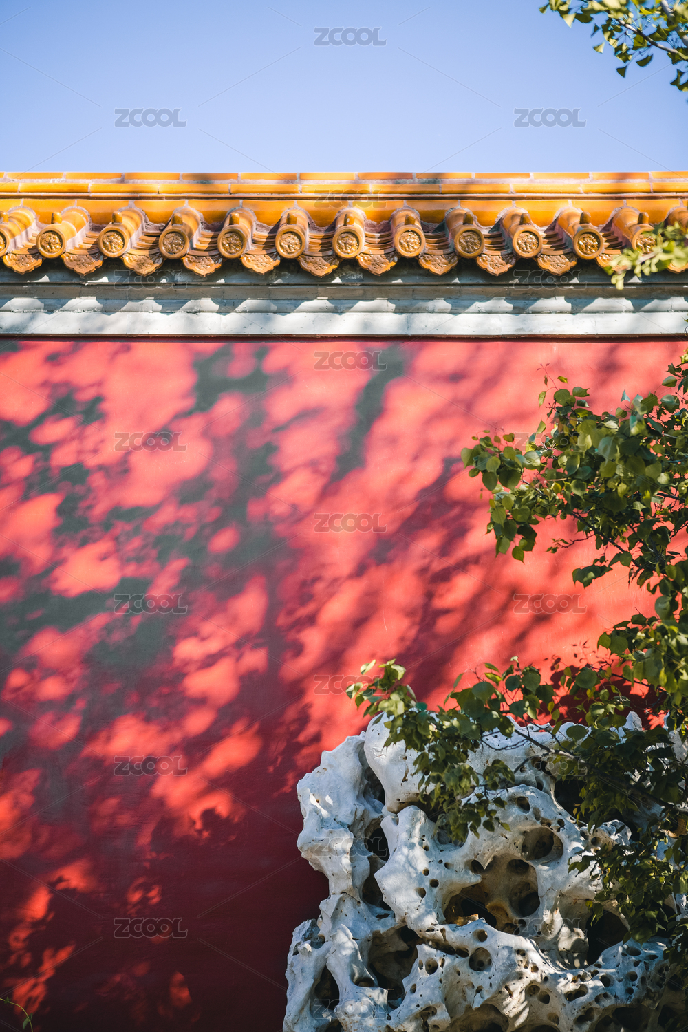 中式传统建筑宁静的红墙琉璃瓦长廊