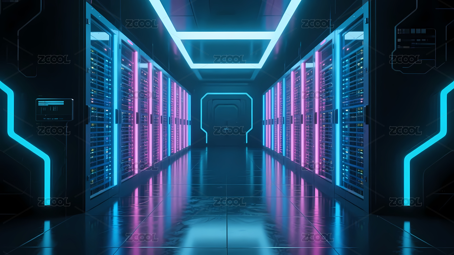 未来,科技,走廊,服务器,机柜,数据,存储,网络,技术,蓝色