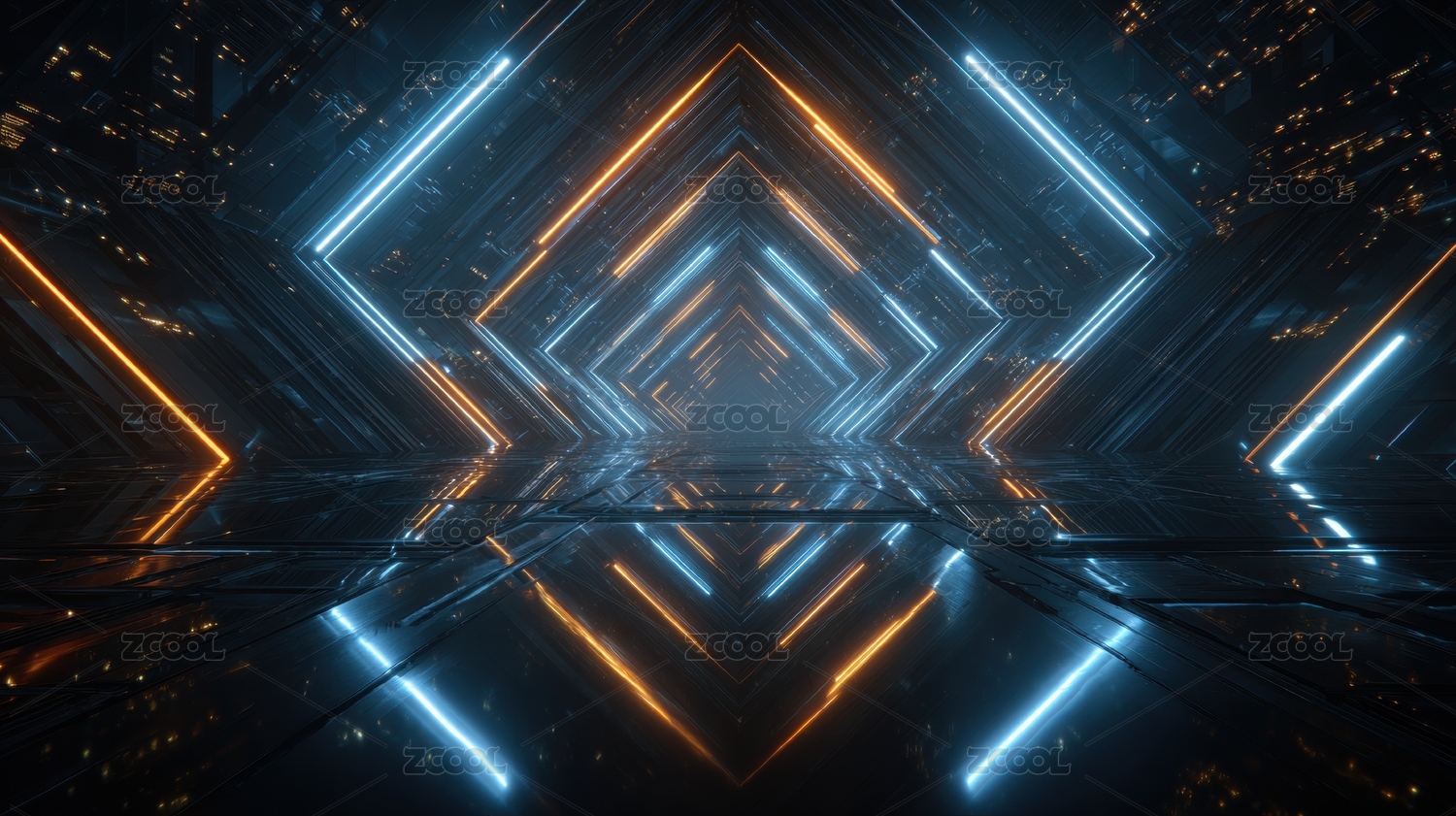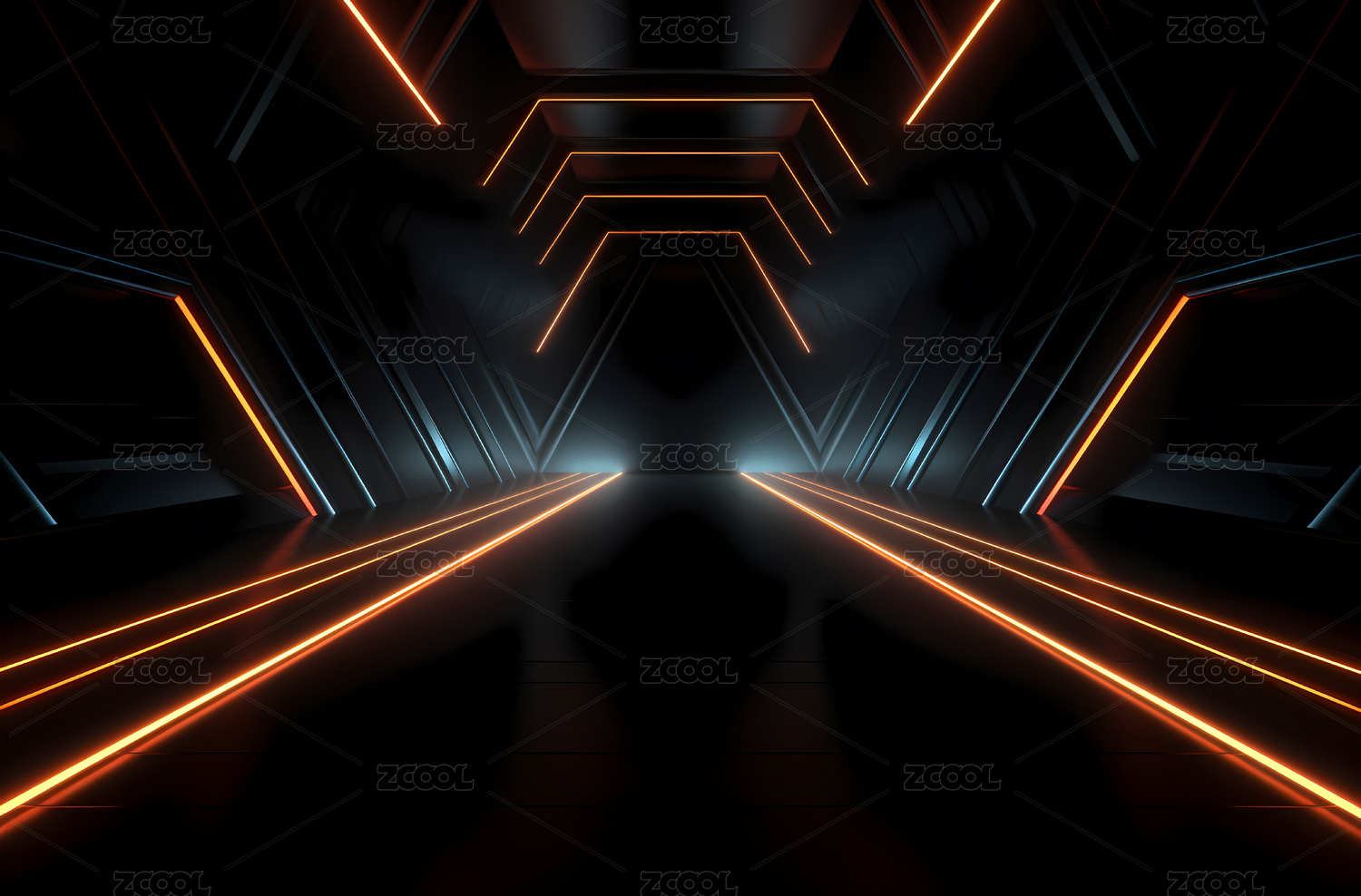 未来,科技,走廊,光线,反射,金属,质感,几何,形状,对称