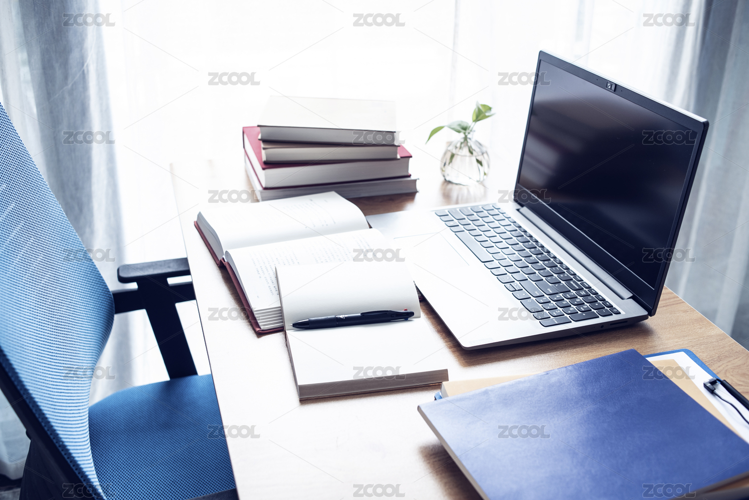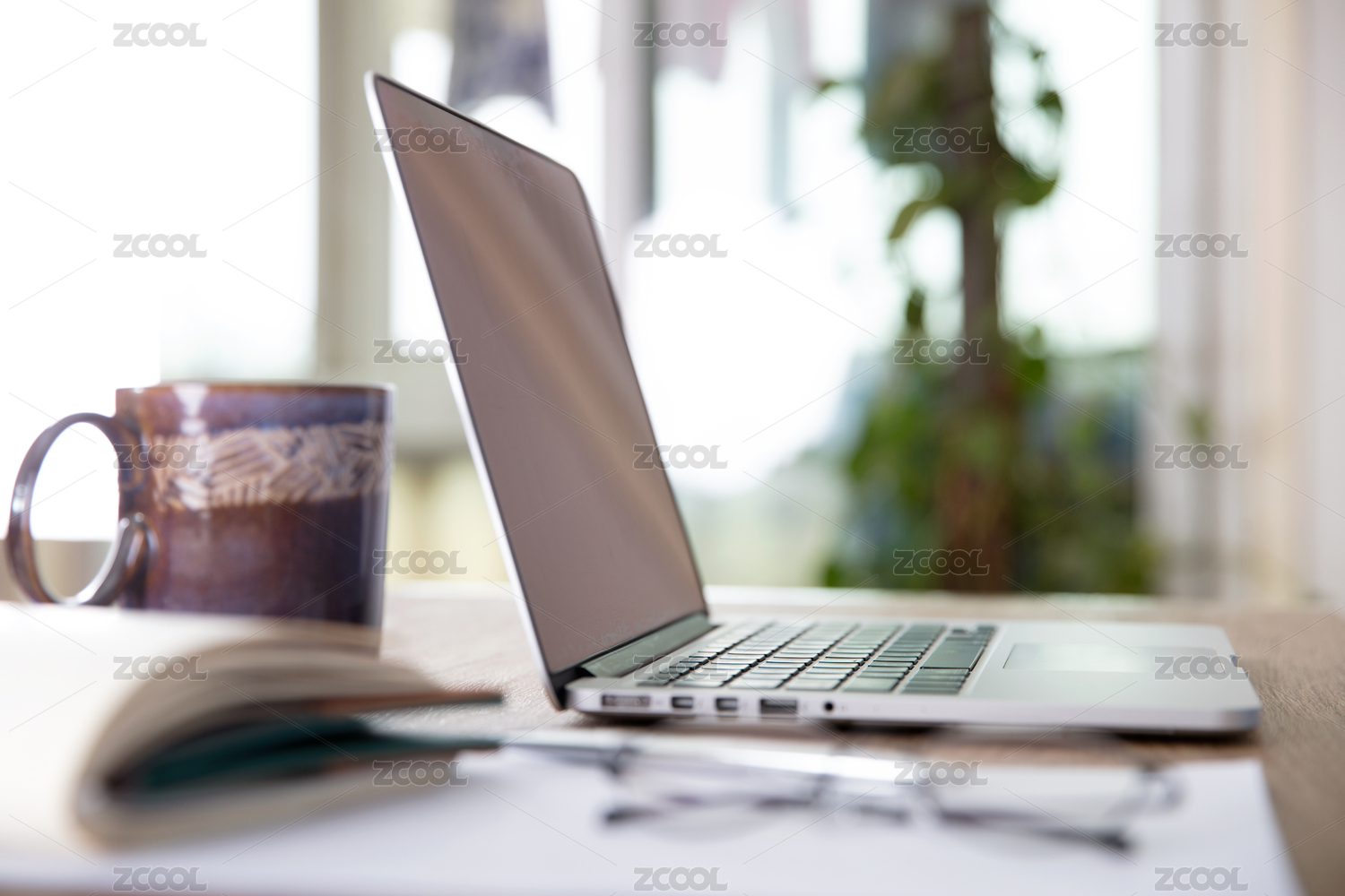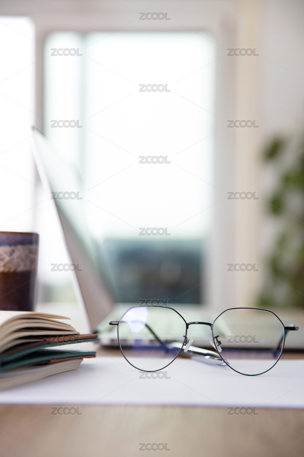 一副眼镜放在笔记本上、背景是虚化的电脑