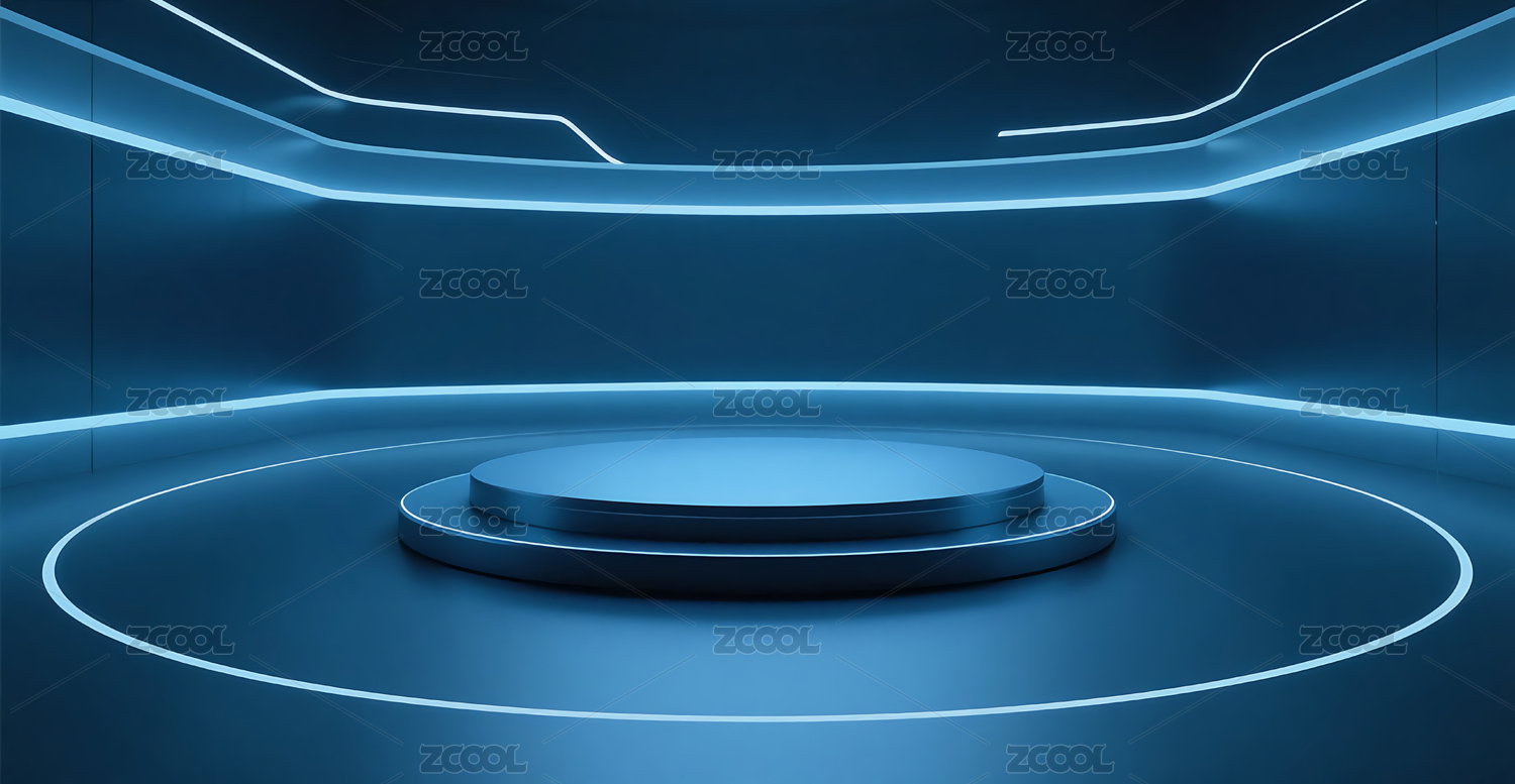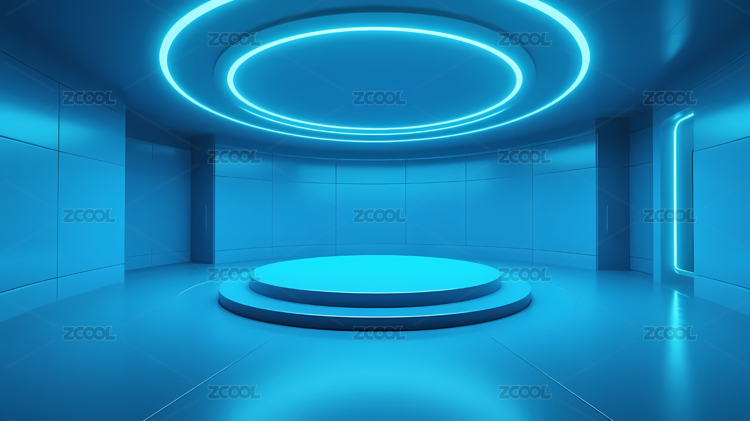 未来,科技,房间,蓝色,灯光,圆形,地面,墙壁,天花板,发光