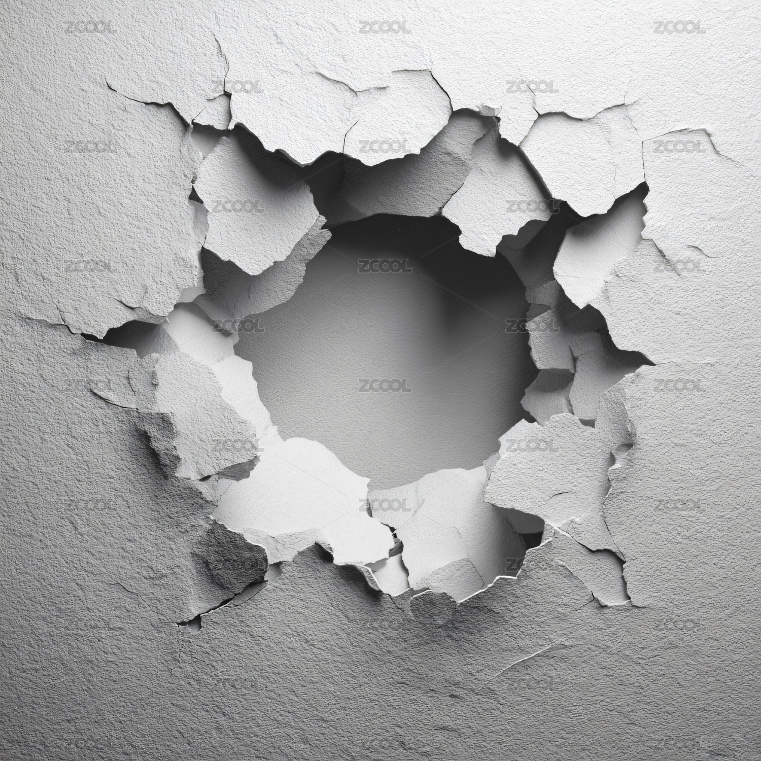 白色背景上的破洞和冲击破损