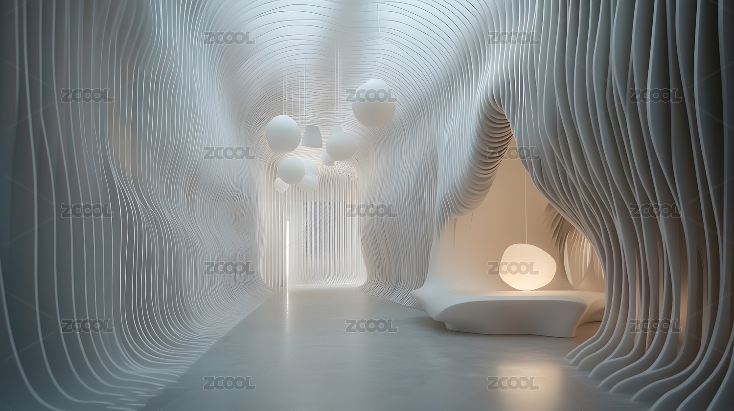 白色波浪形未来主义建筑走廊