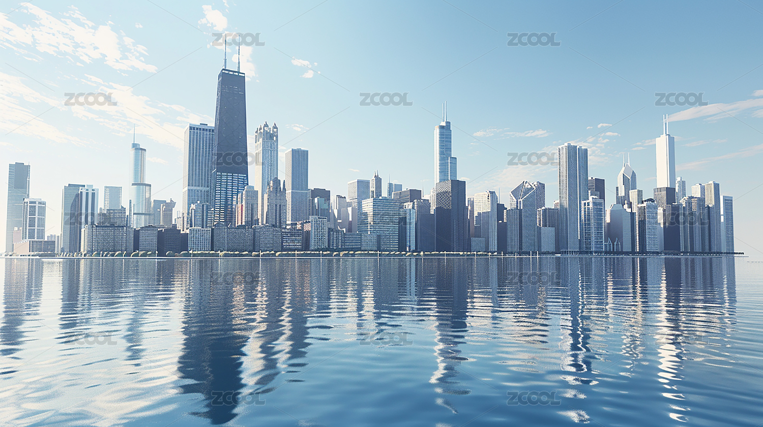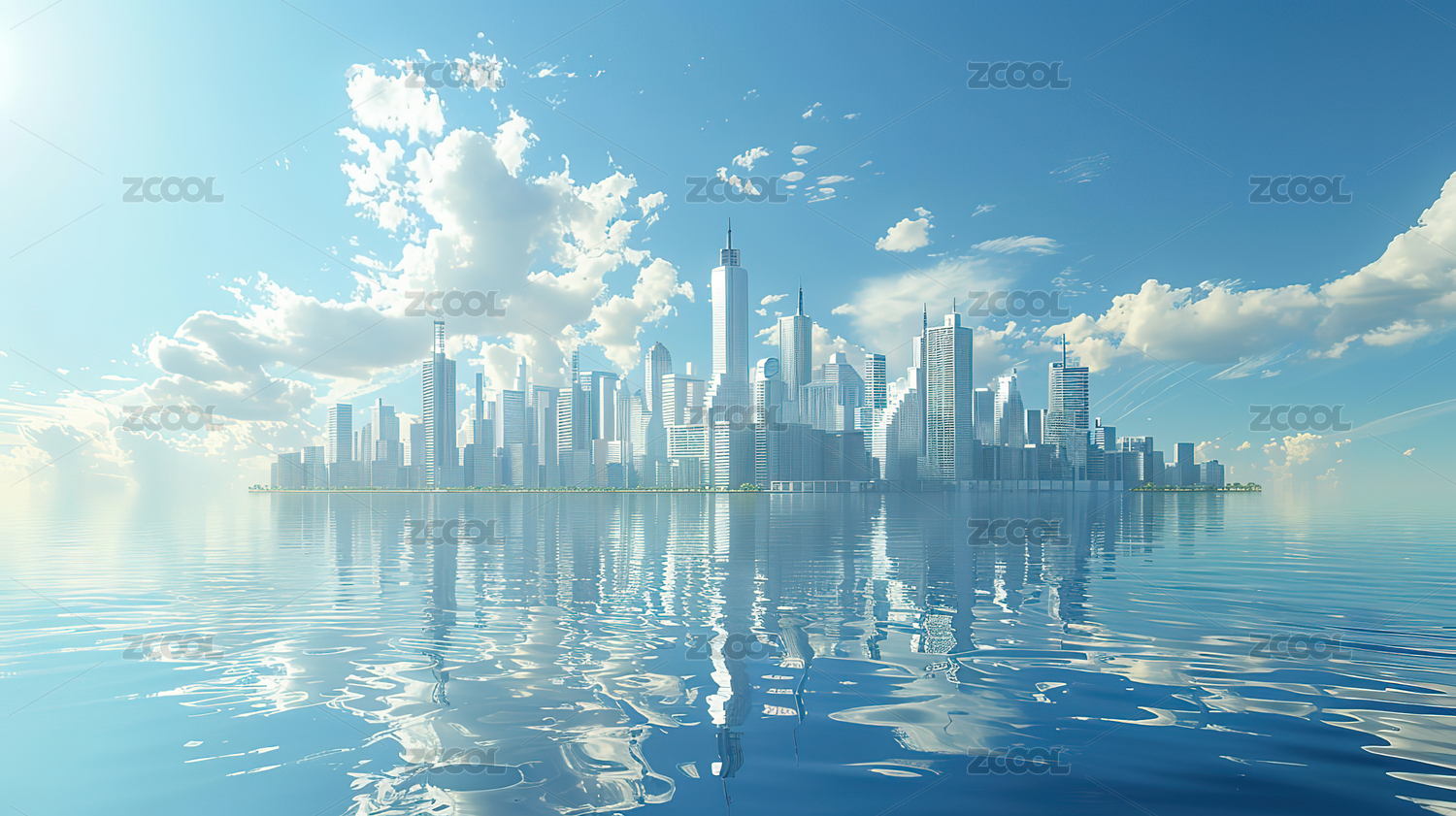 城市天际线城市景观3D渲染