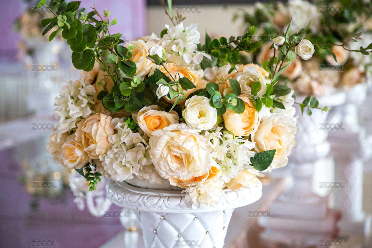 一种用漂亮的五彩缤纷的花编织的花束。婚礼布置现场的花束