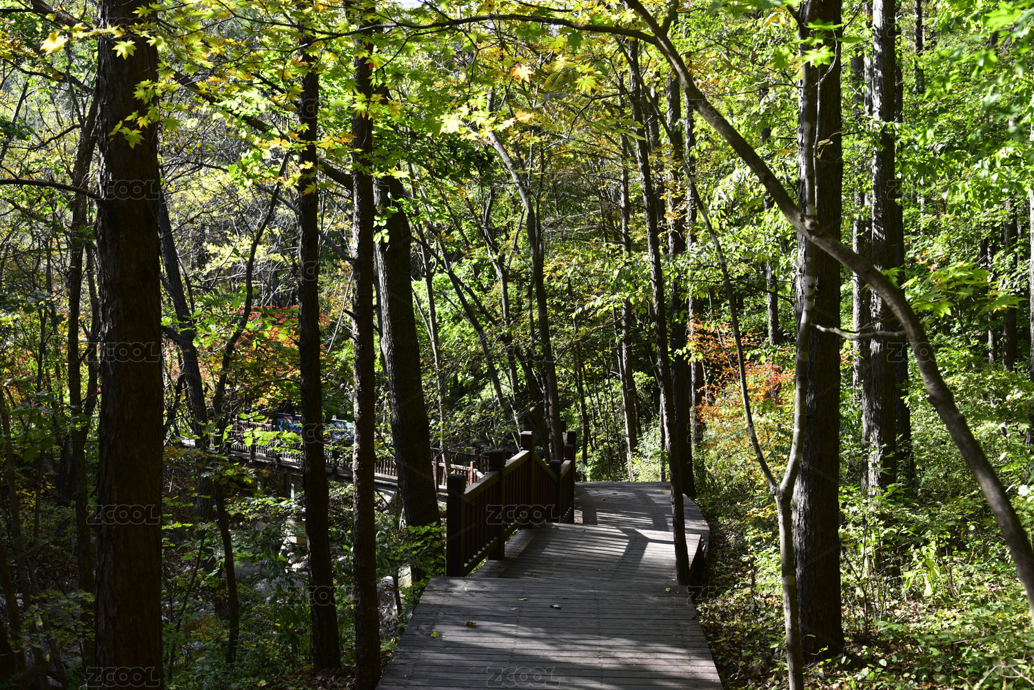 秋天辽宁本溪大冰沟森林公园的登山小径