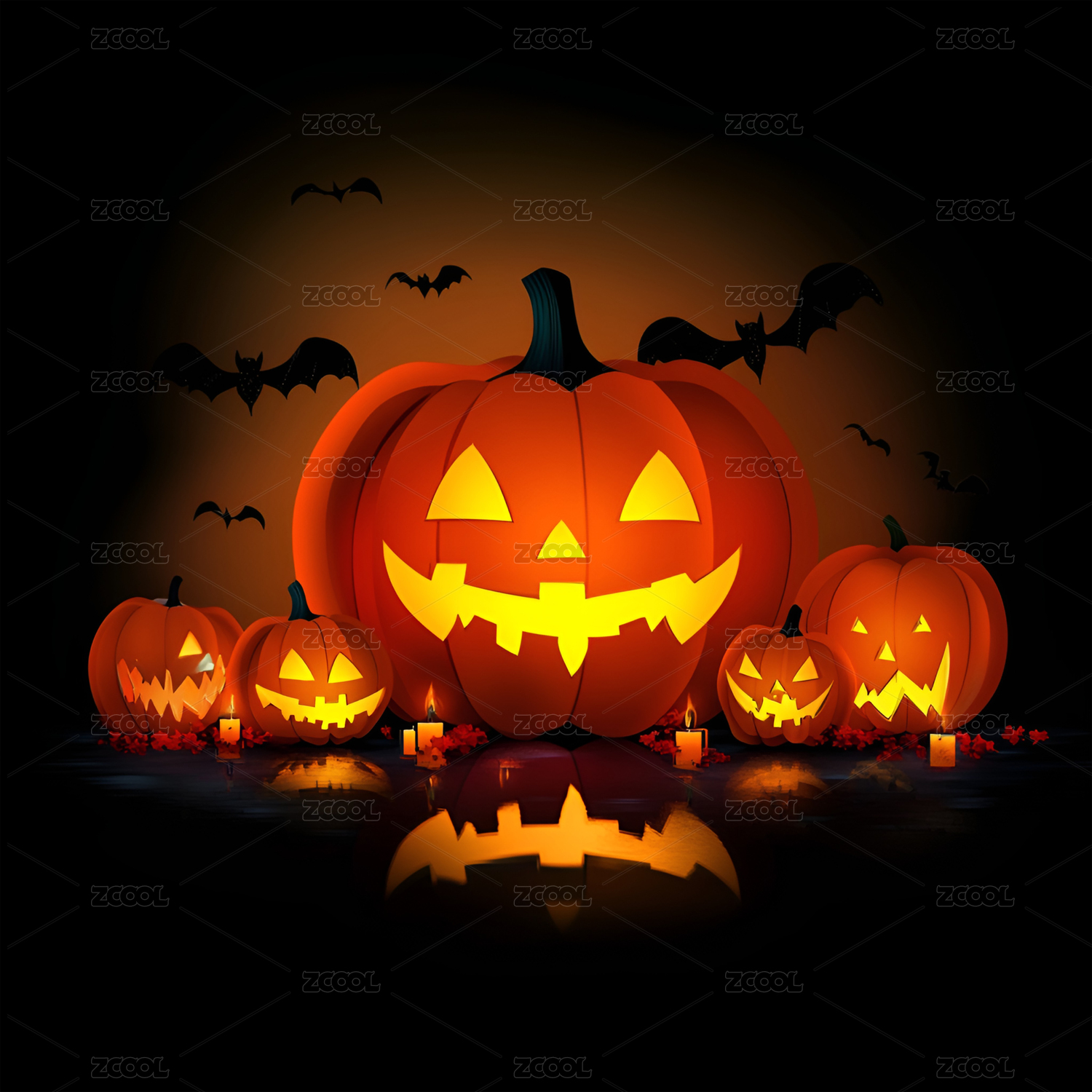 万圣节西方传统节日南瓜灯复古派对背景插画