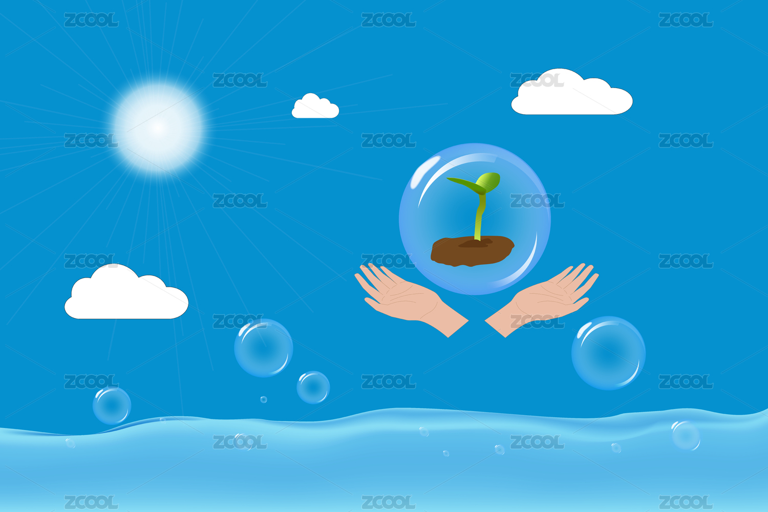 矢量保护好我们的环境,水阳光和双手捧幼苗