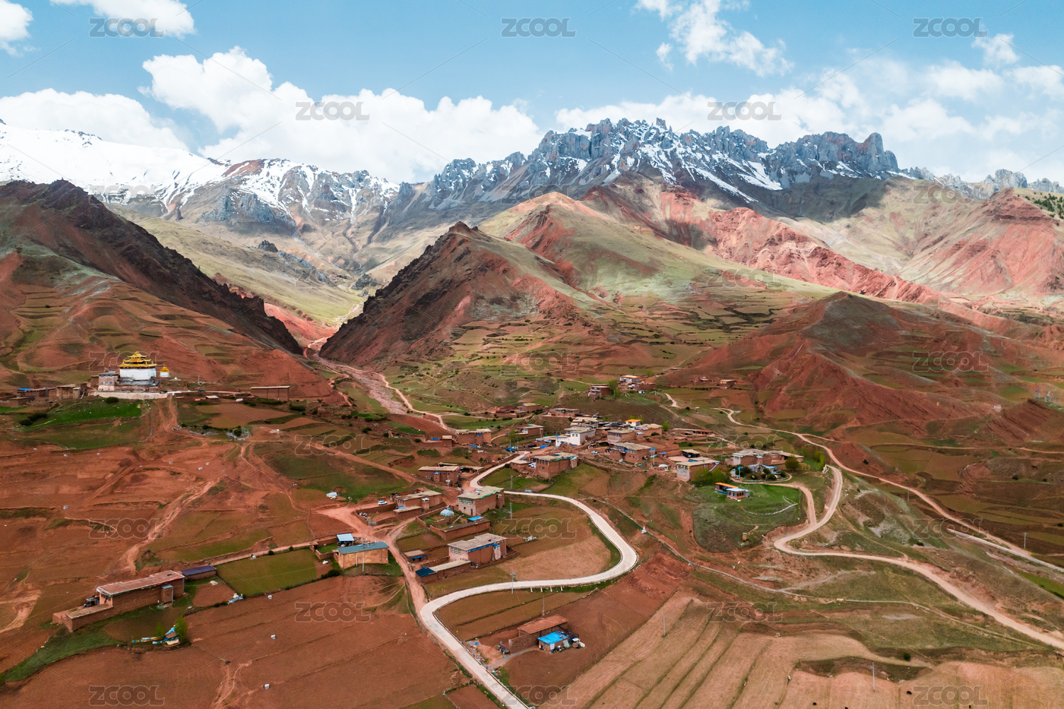航拍中国西藏昌都芒康拉乌山下的卡均村