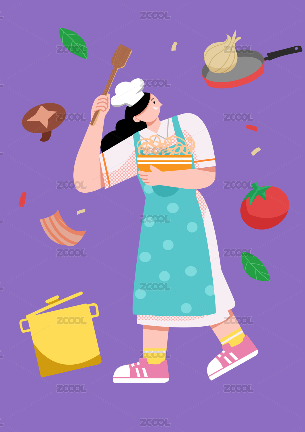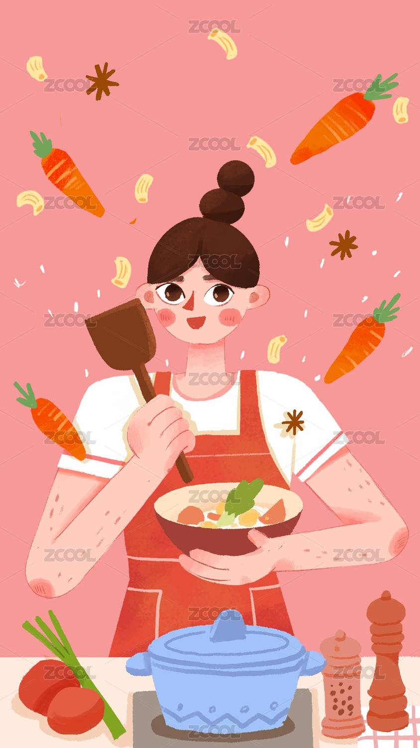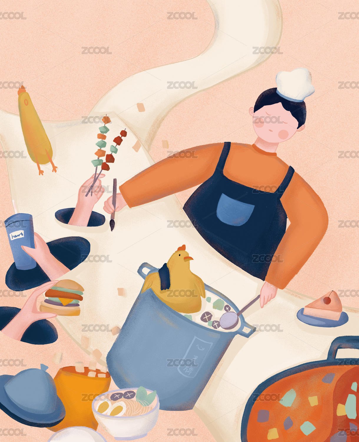卡通手绘厨师烹饪煮饭插画