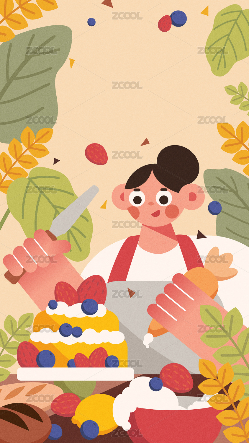 扁平,烘焙,蛋糕,料理,厨师,厨房,轻松,可爱,插画,开屏