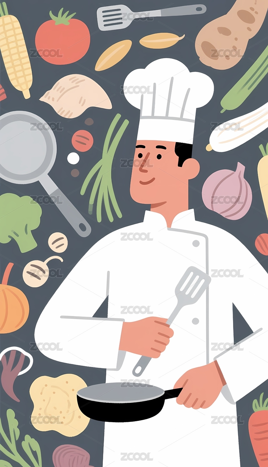 厨师烹饪健康食材插画