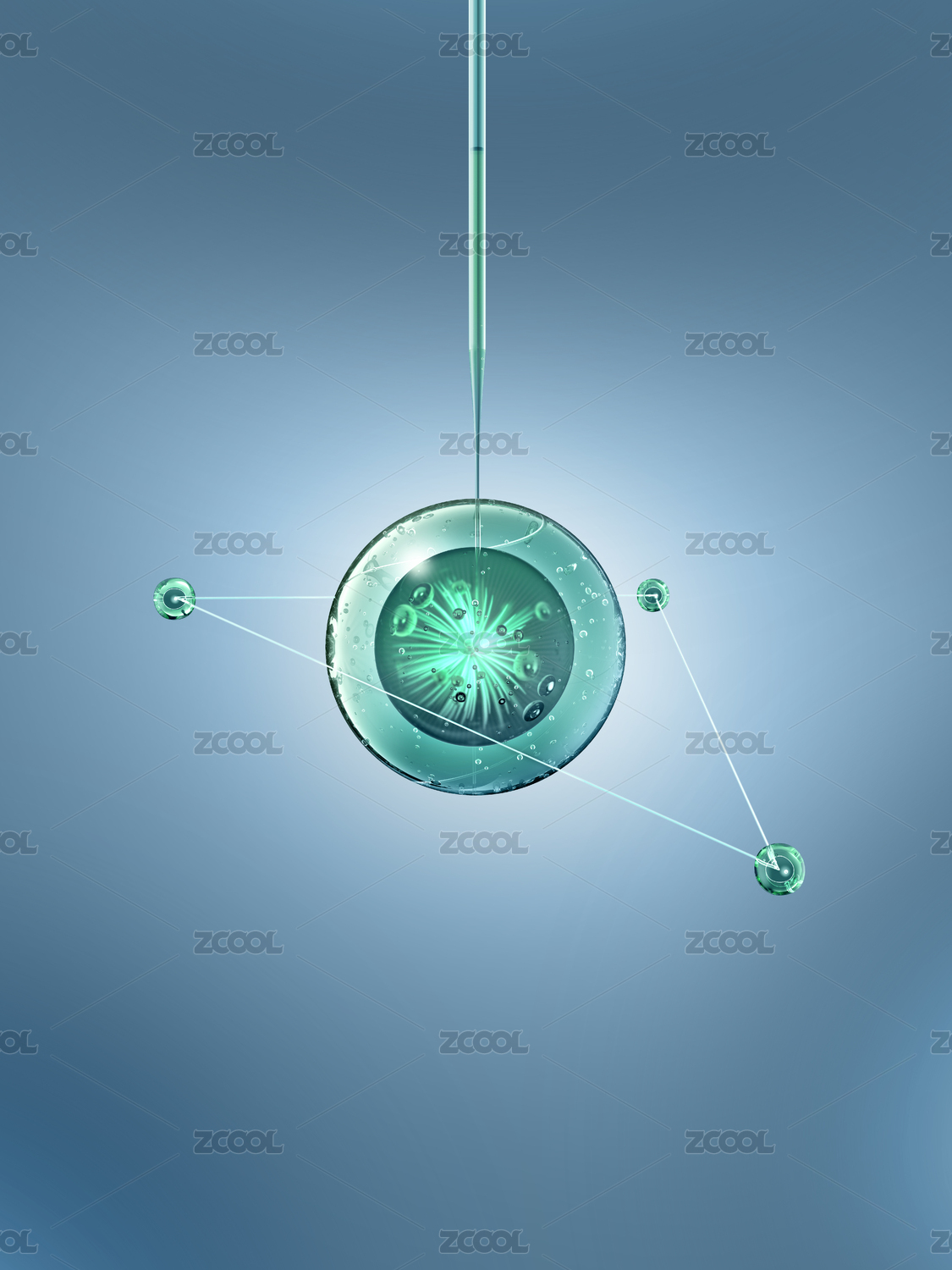 蓝色透明球体分子结构