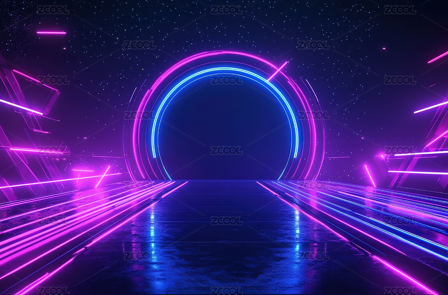 数码蓝粉圆形霓虹灯抽象图形海报网页背景