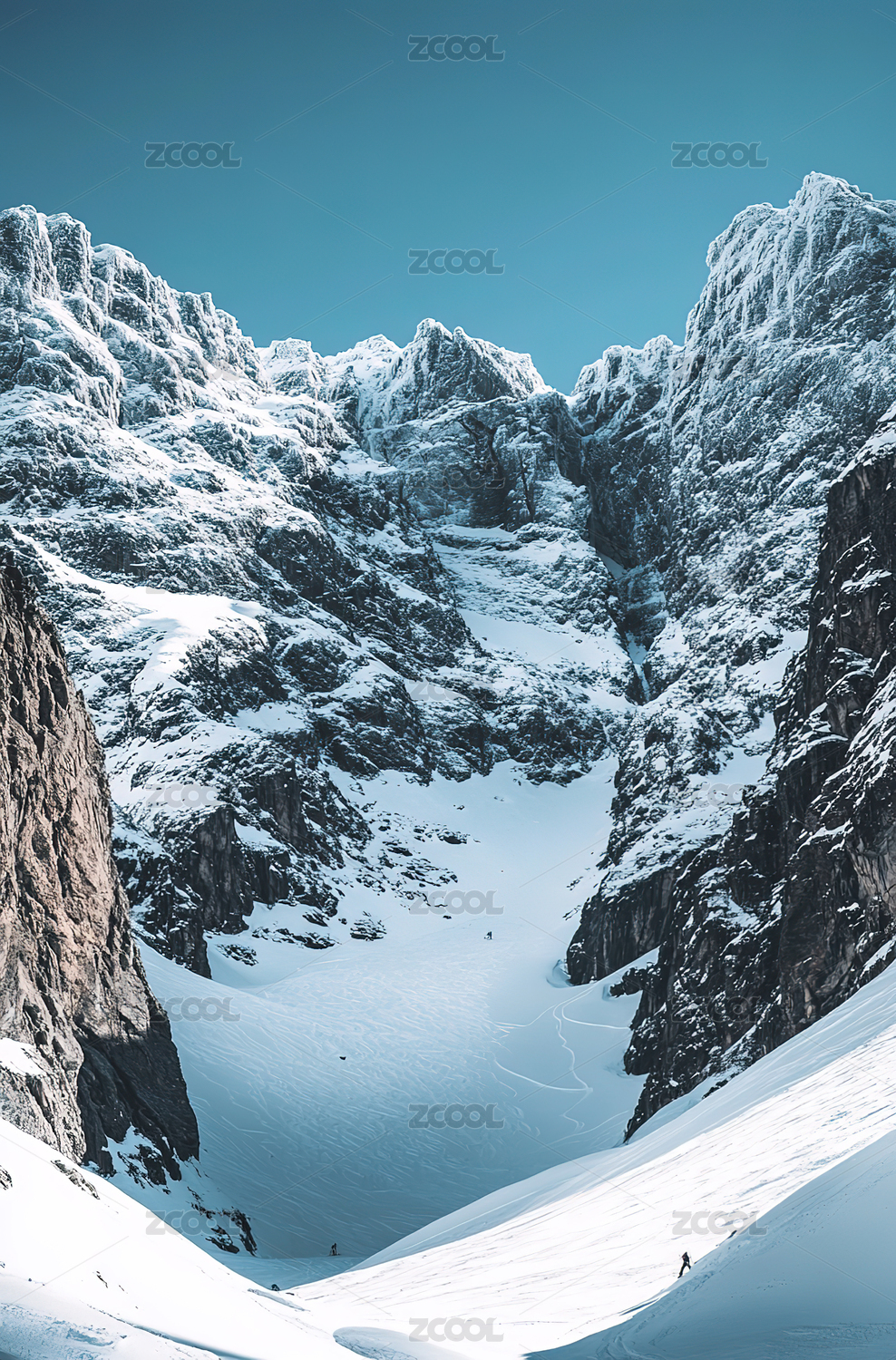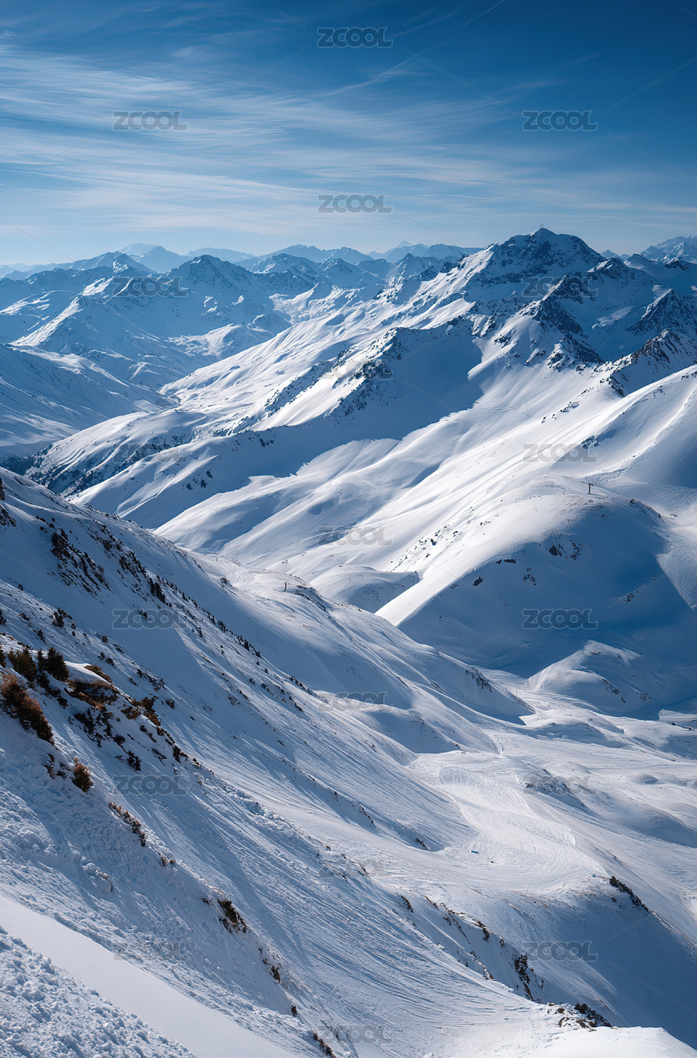 白雪皑皑的群山在晴朗的天空中俯瞰
