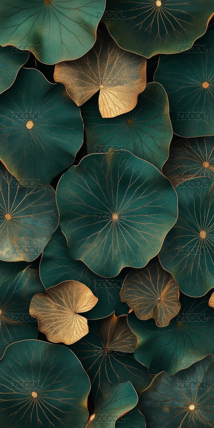 橘绿色花朵荷花睡莲壁纸插画手机端海报背景