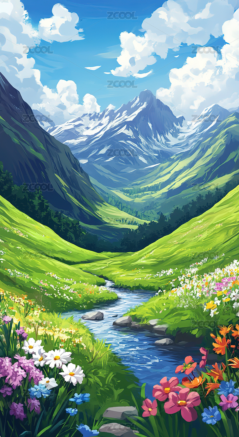 森林,植物,水彩,景观,户外,海报,背景,蓝色,自然,山