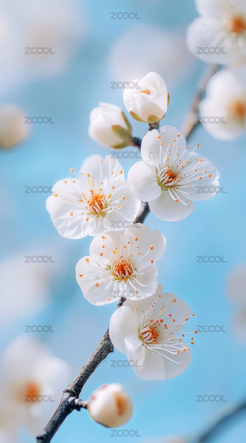 枝头绽放的淡雅花朵