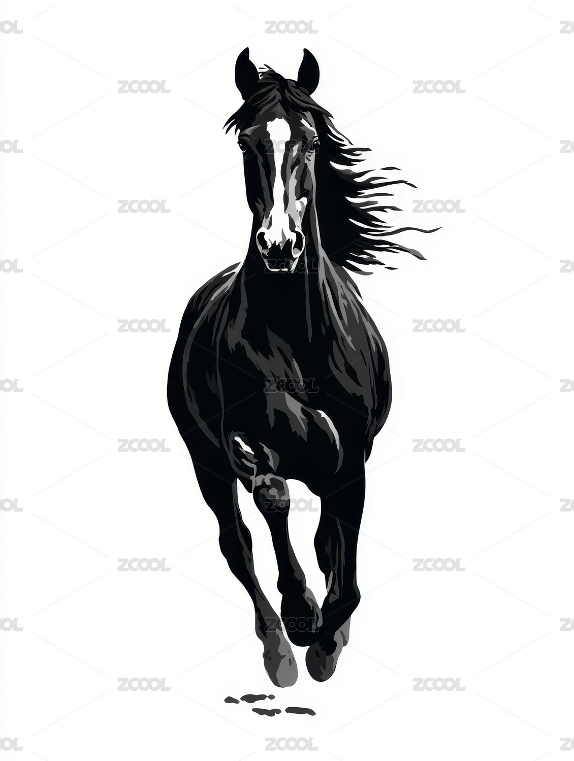 骏马飞扬鬃毛飘逸,黑白素描自由驰骋