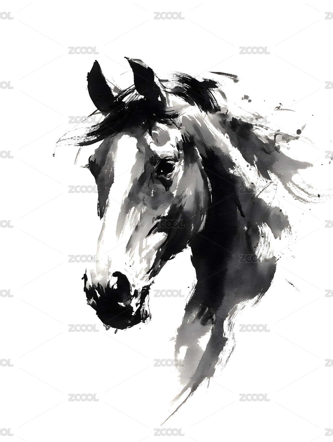 水墨画,写意,骏马,马头,马首,马脸,商业插画,插画,艺术,马
