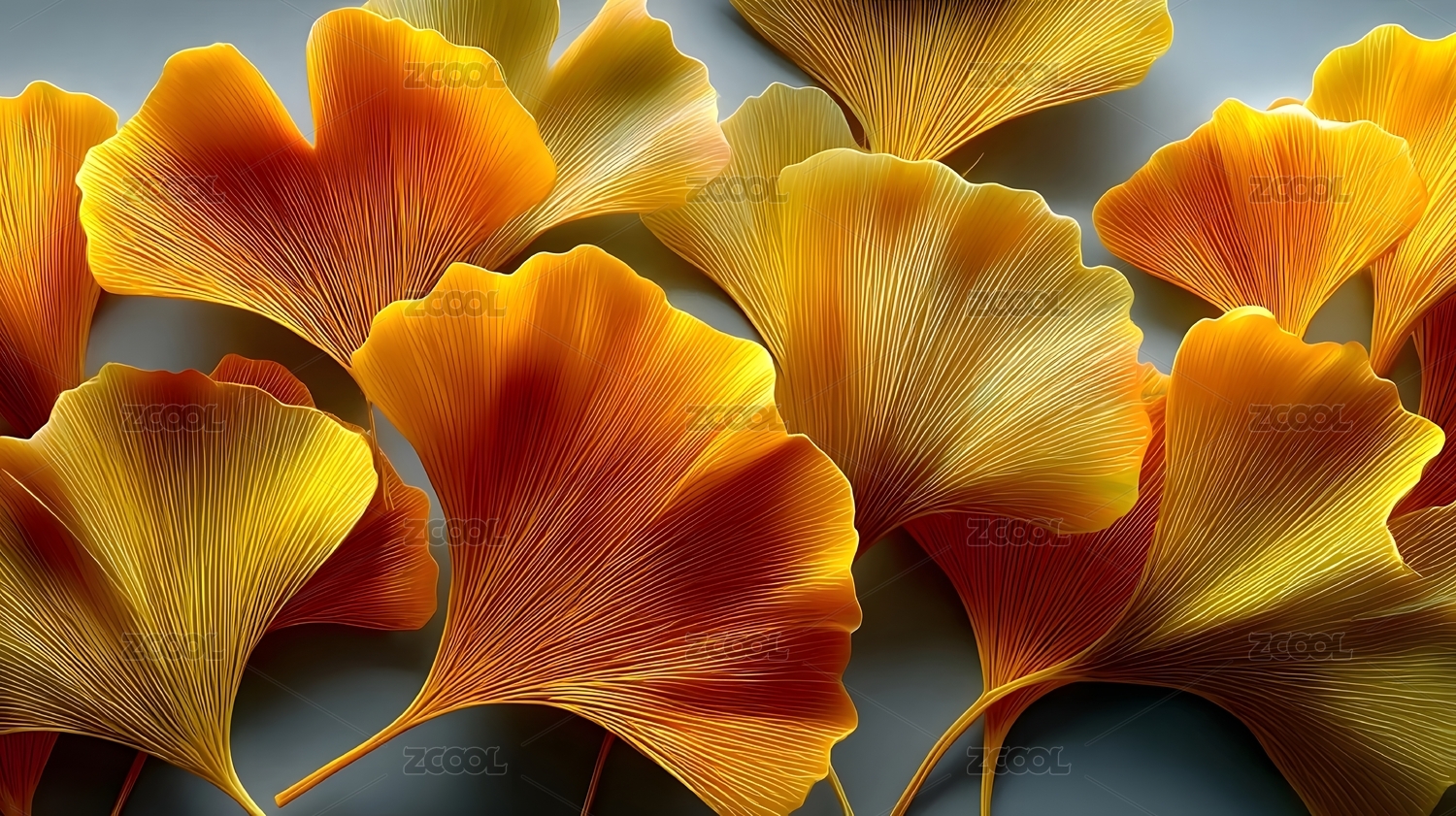 彩银杏叶图案呈现自然艺术的装饰视觉