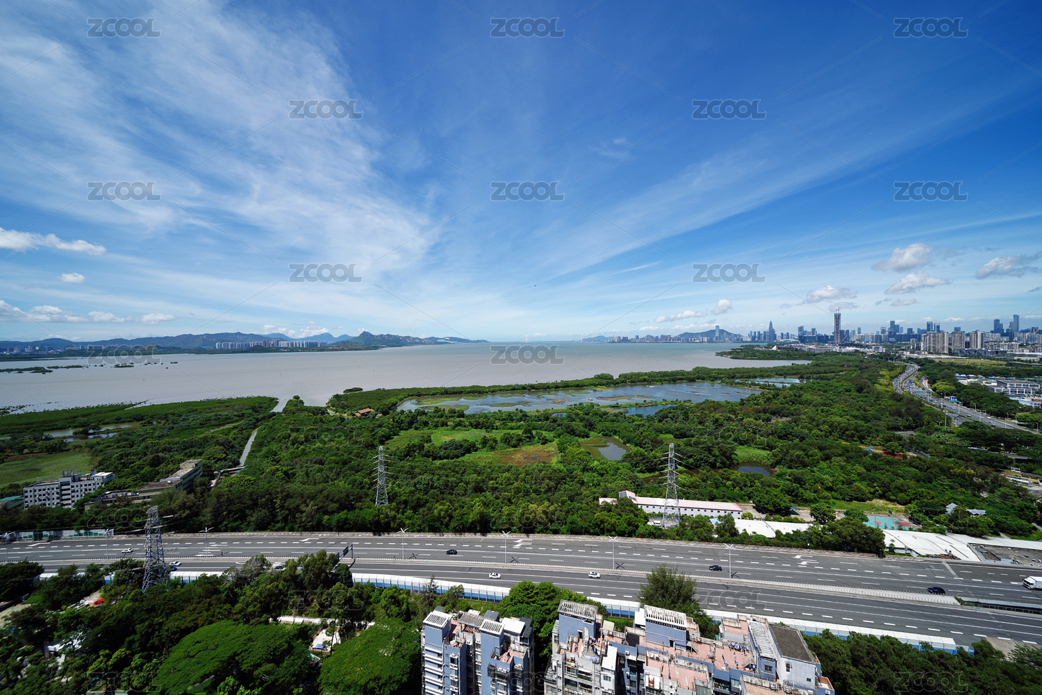 深圳滨海大道红树林绿色环保蓝天白云车流