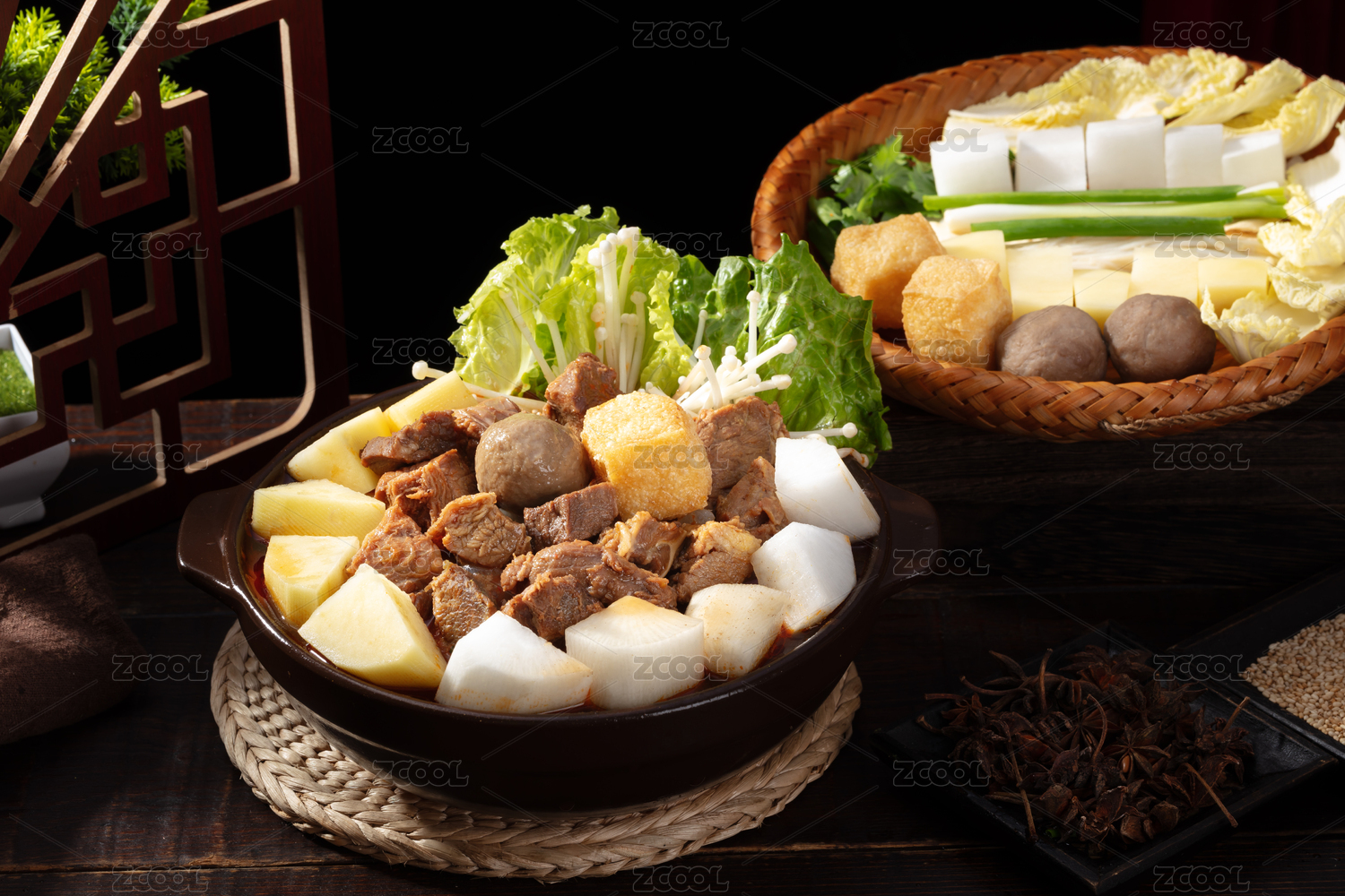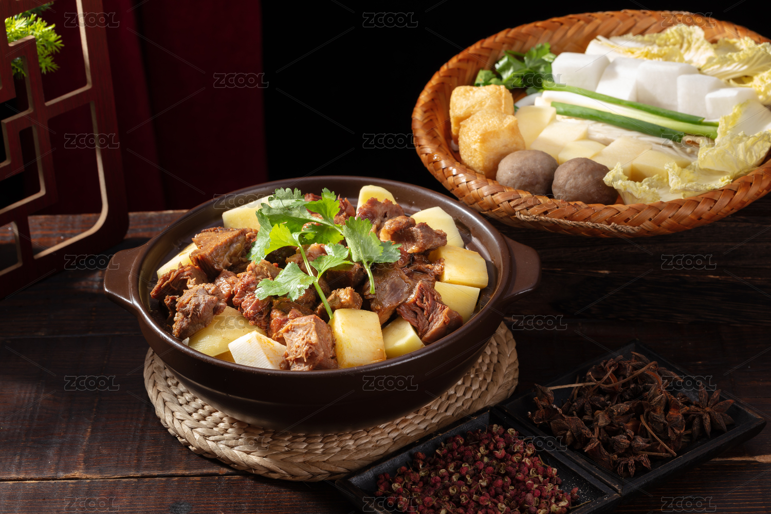 砂锅里的土豆牛肉丸豆腐泡红烧牛肉火锅
