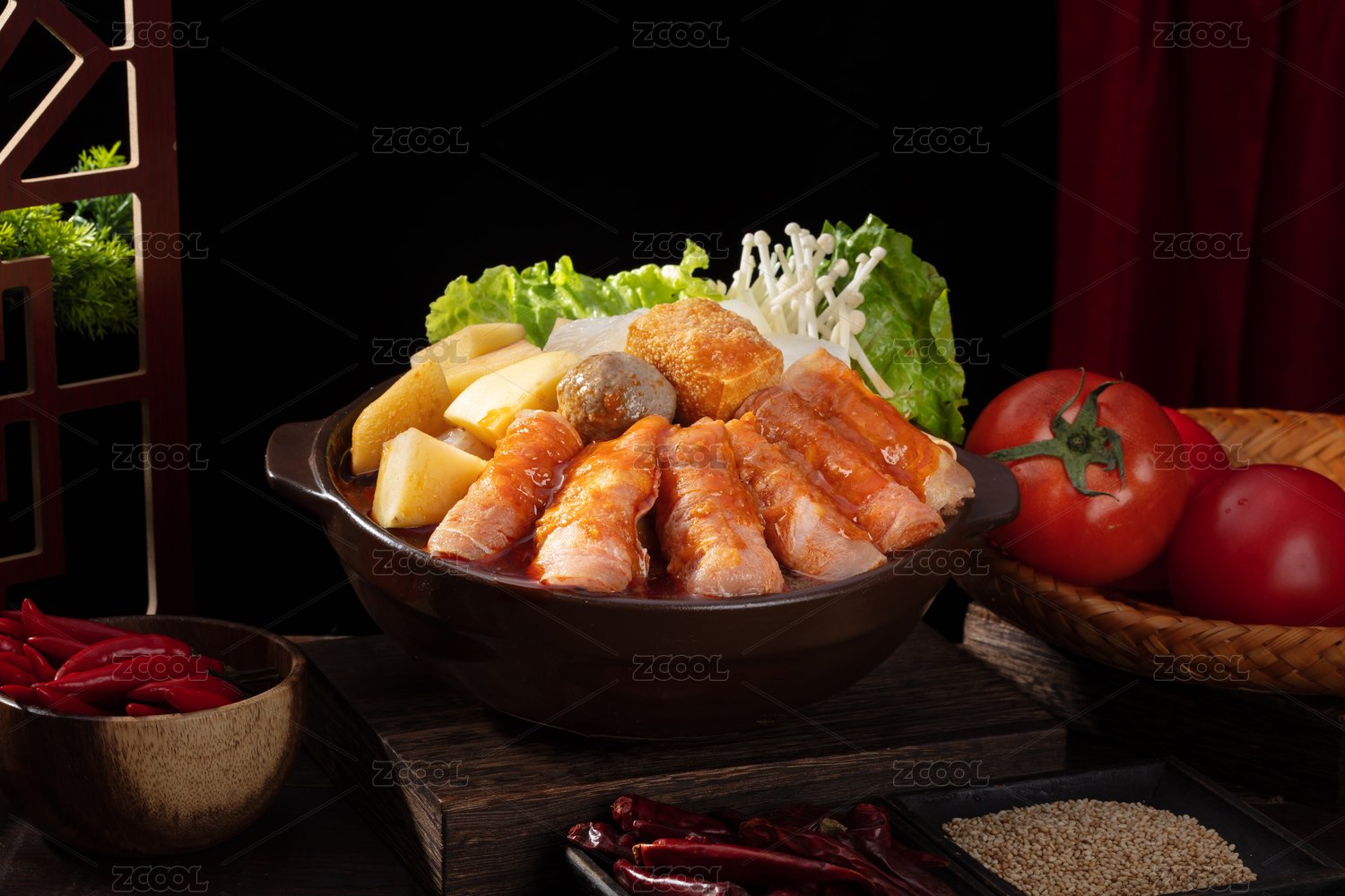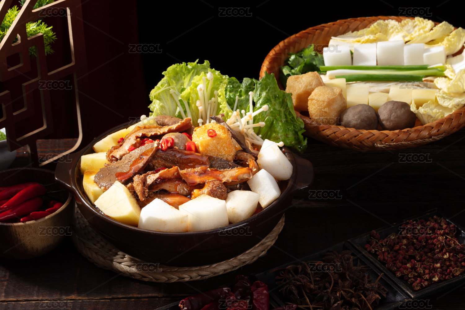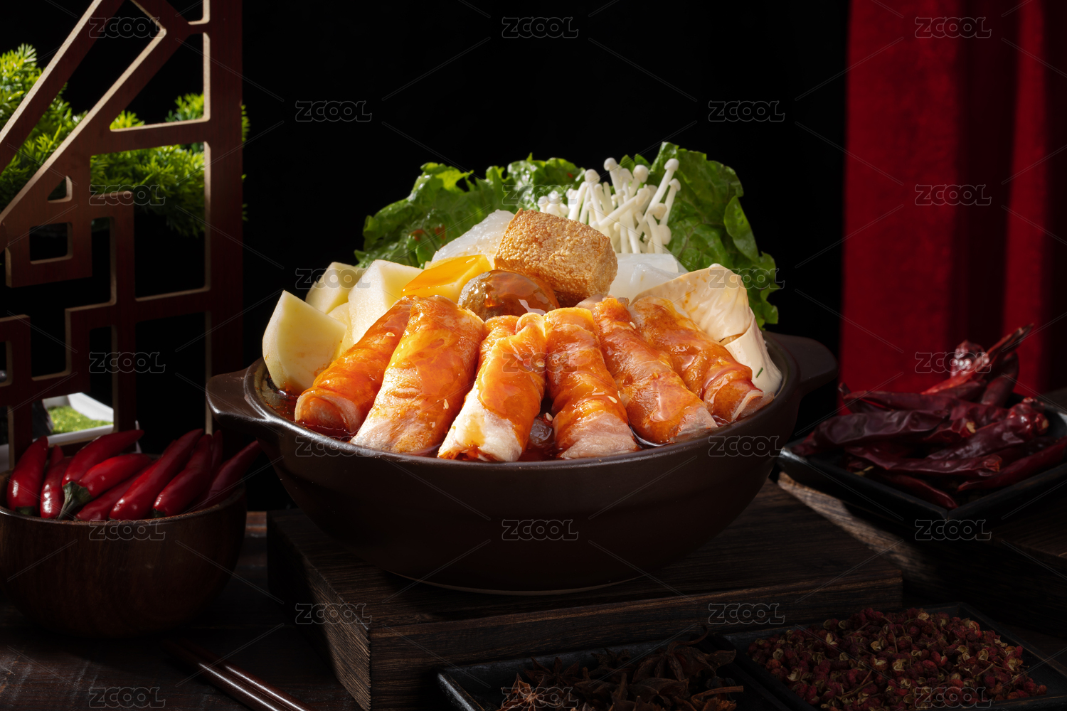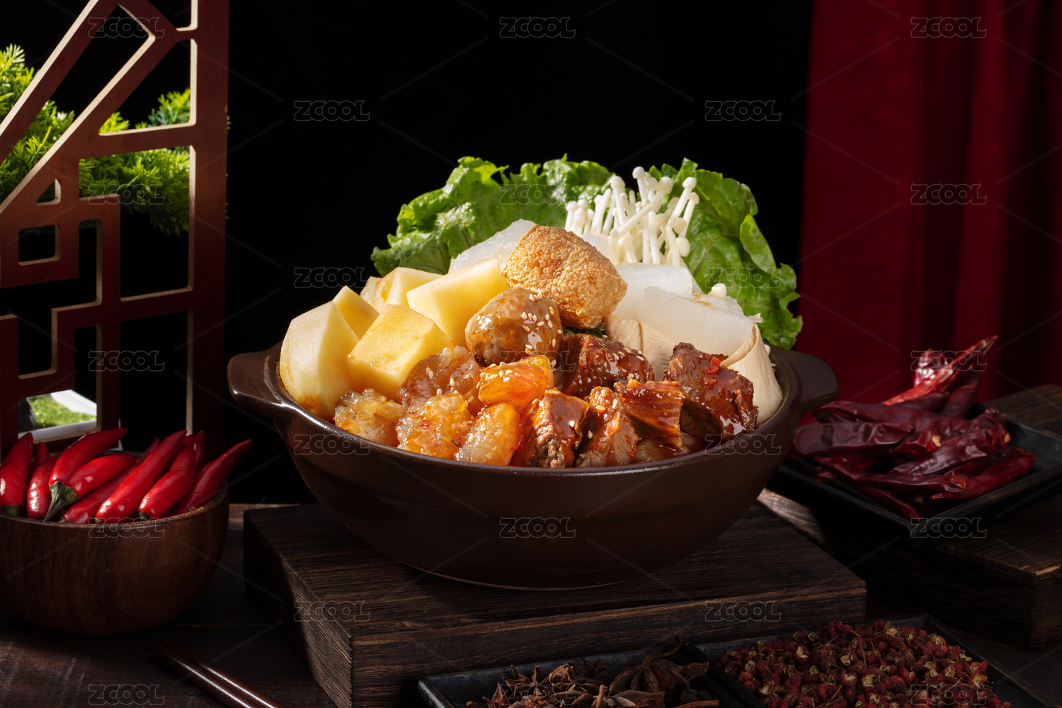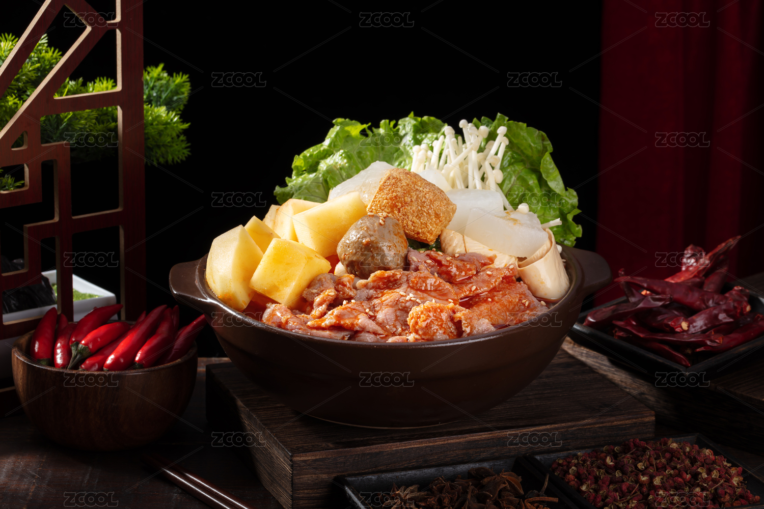 砂锅里的土豆牛肉丸豆腐泡麻辣火锅牛肉卷