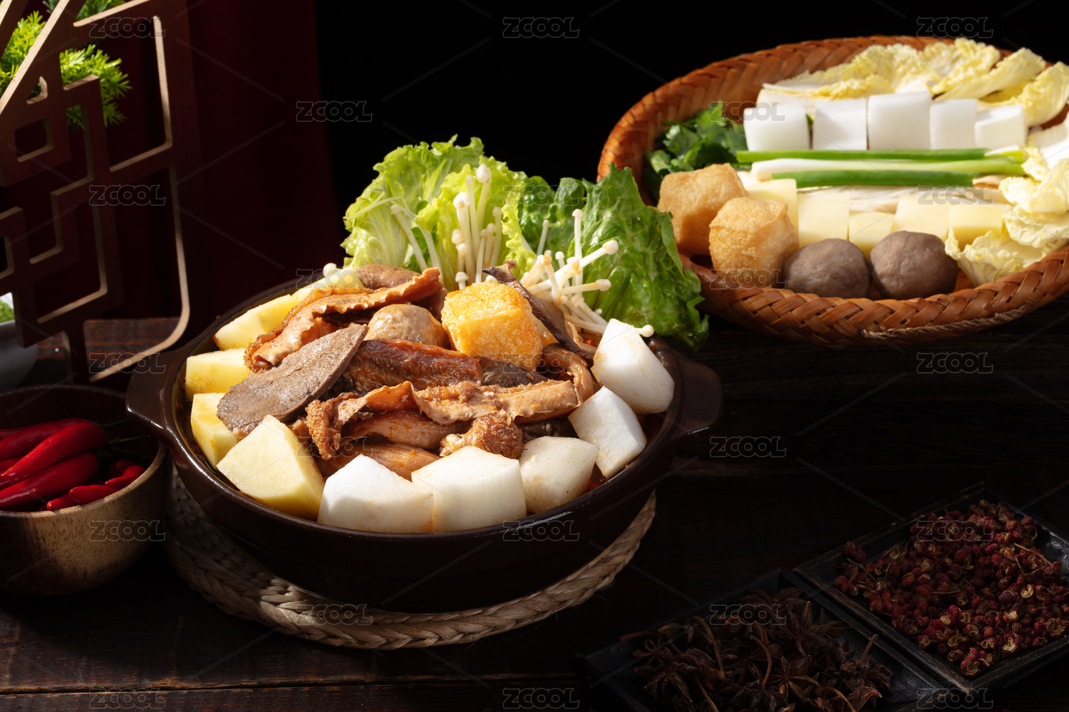 砂锅里的土豆牛肉丸豆腐泡麻辣火锅毛肚