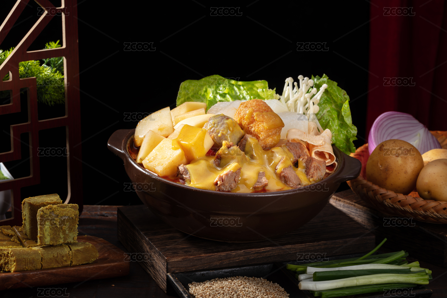 砂锅里的土豆牛肉丸豆腐泡咖喱牛肉小火锅