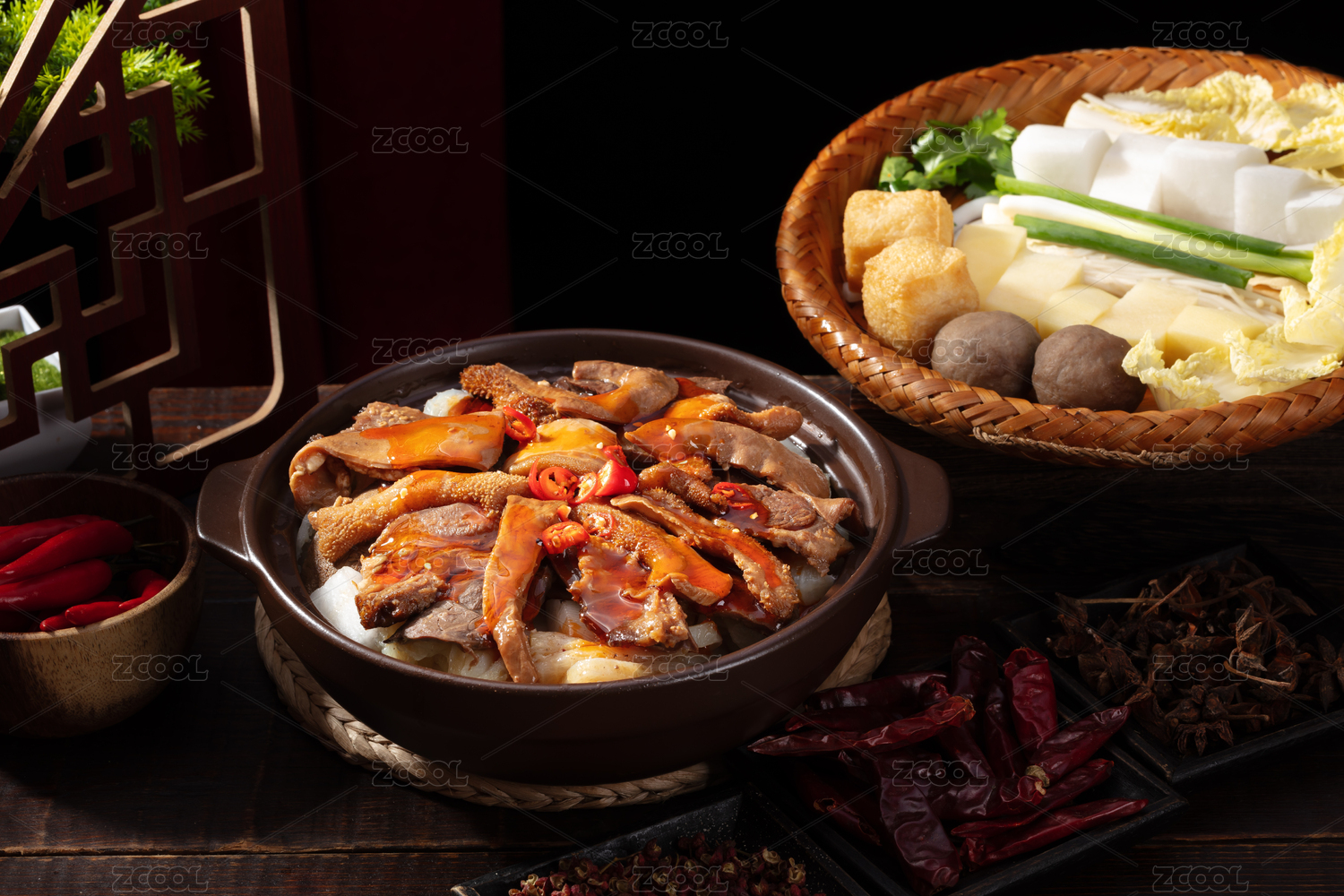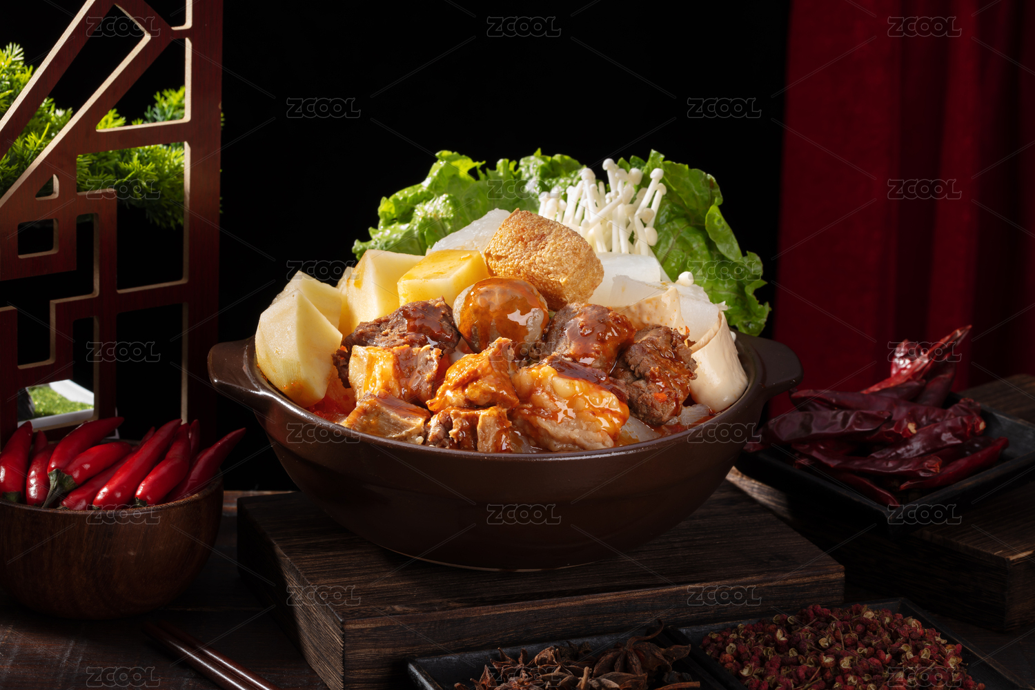 砂锅里的土豆牛肉丸豆腐泡麻辣红烧牛肉火锅