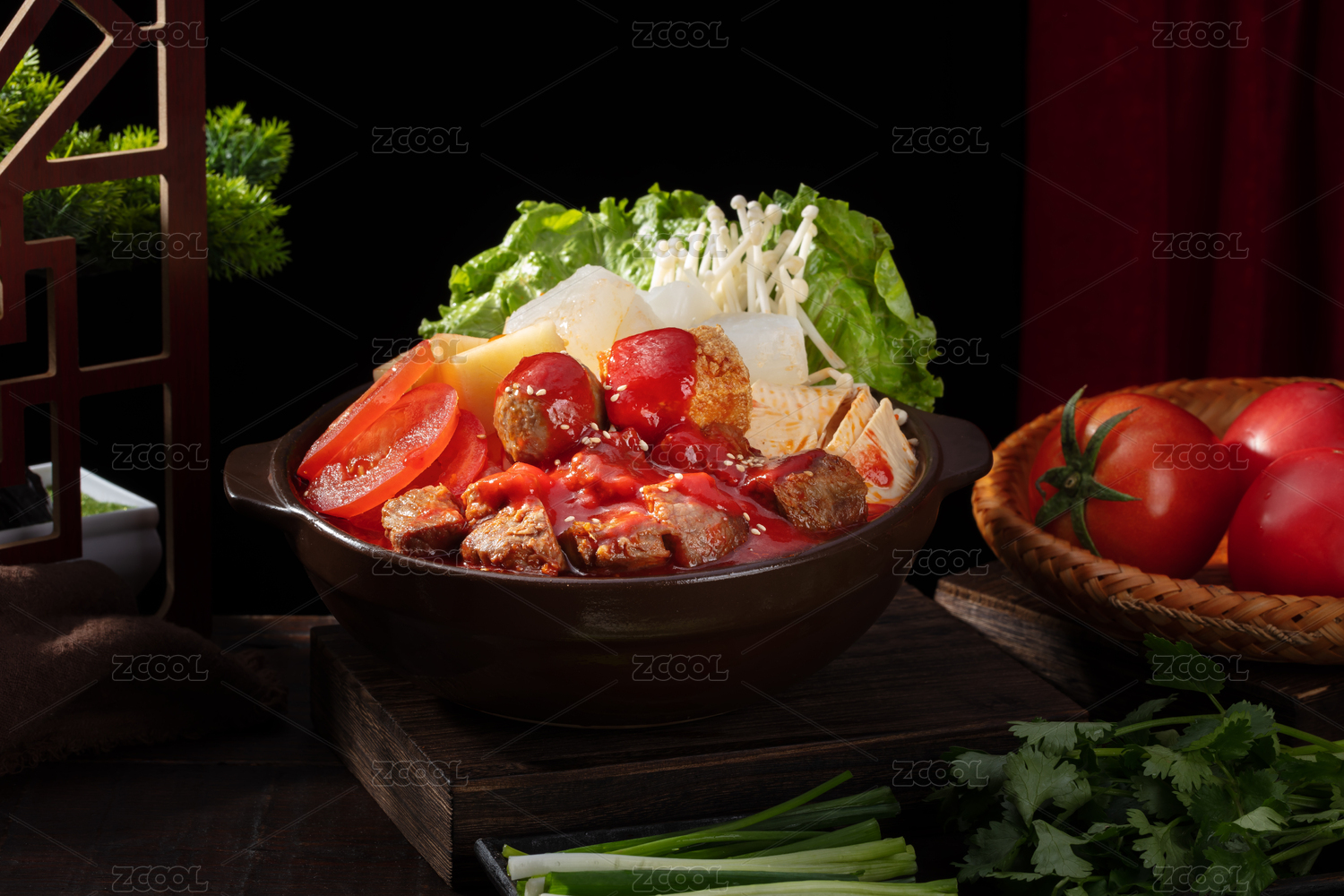 砂锅里的土豆牛肉丸豆腐泡番茄牛肉小火锅