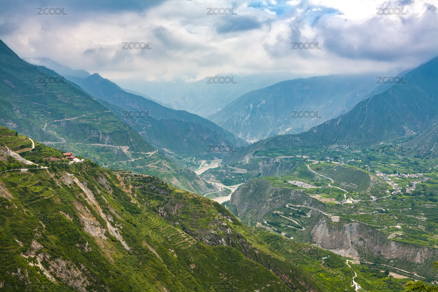 萝卜寨眺望四川阿坝汶川县的岷江河谷