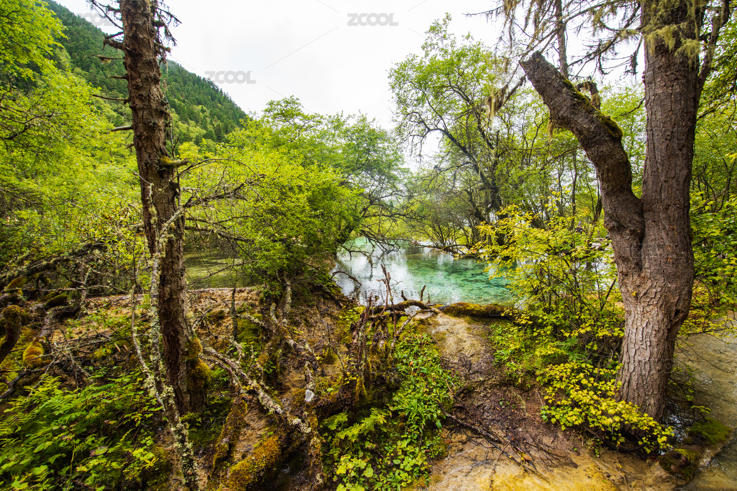 中国四川 阿坝茂县松坪沟五彩池的清澈的翡翠般的水