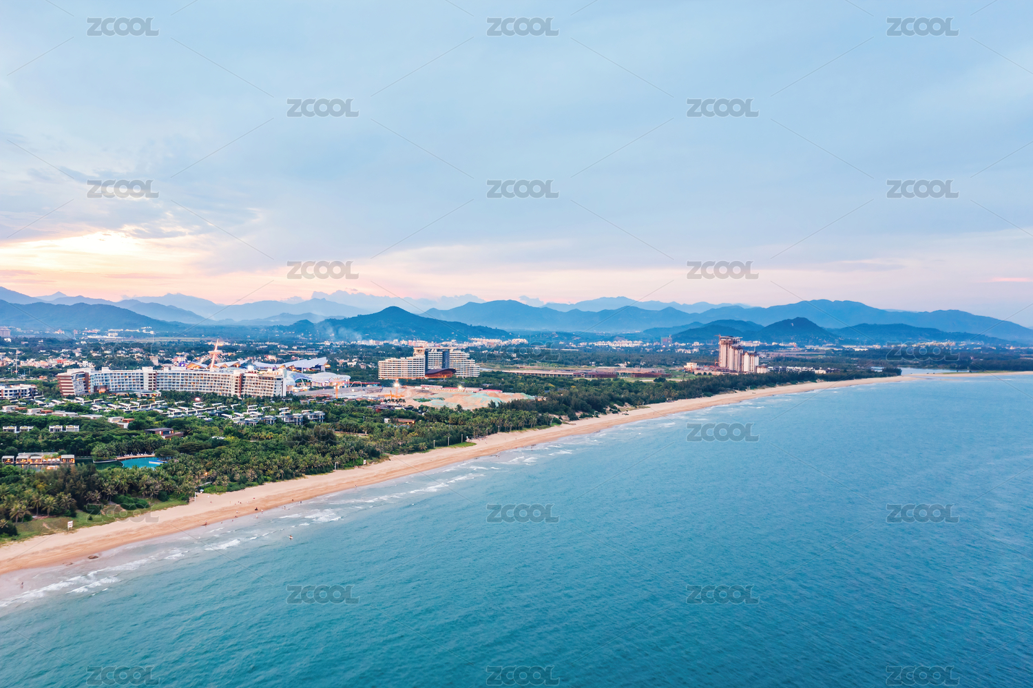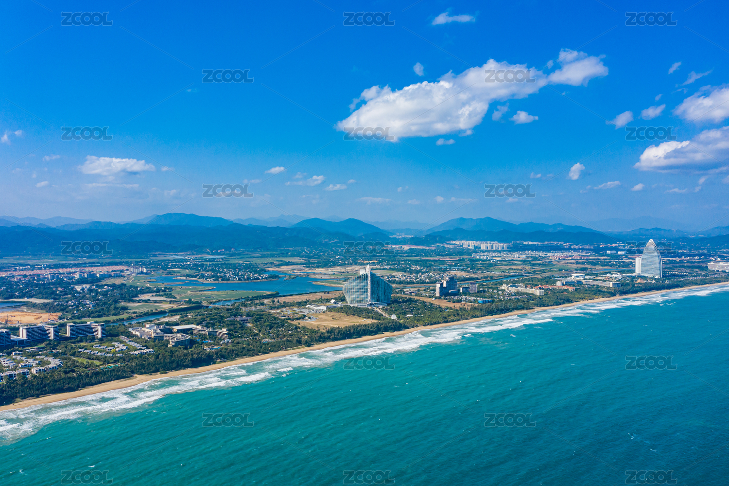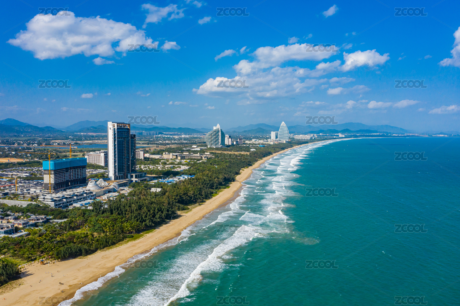 航拍中国海南三亚海棠湾度假酒店带及海景沙滩
