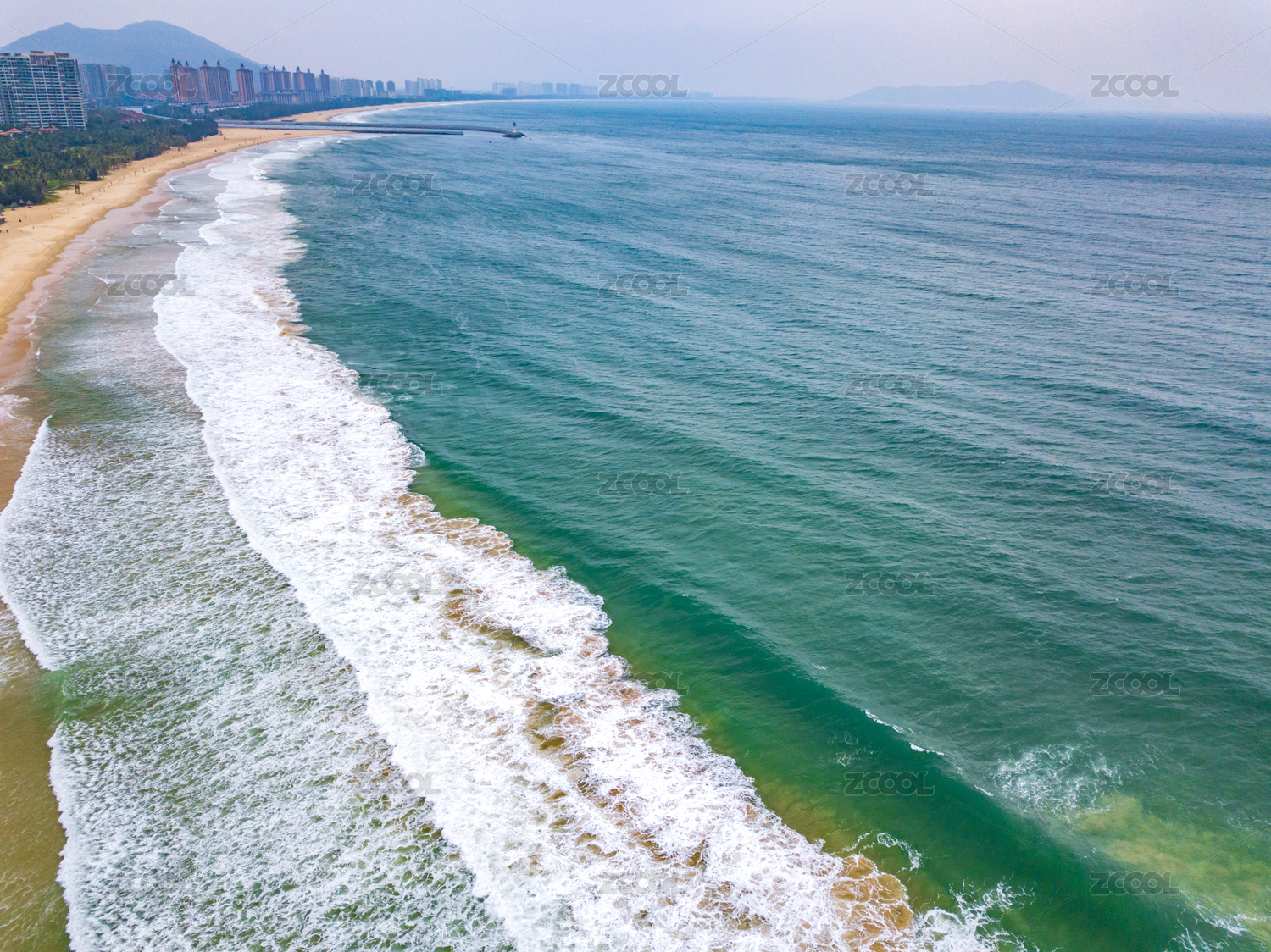 航拍海南三亚海棠湾旅游区椰林海滩海景浪花