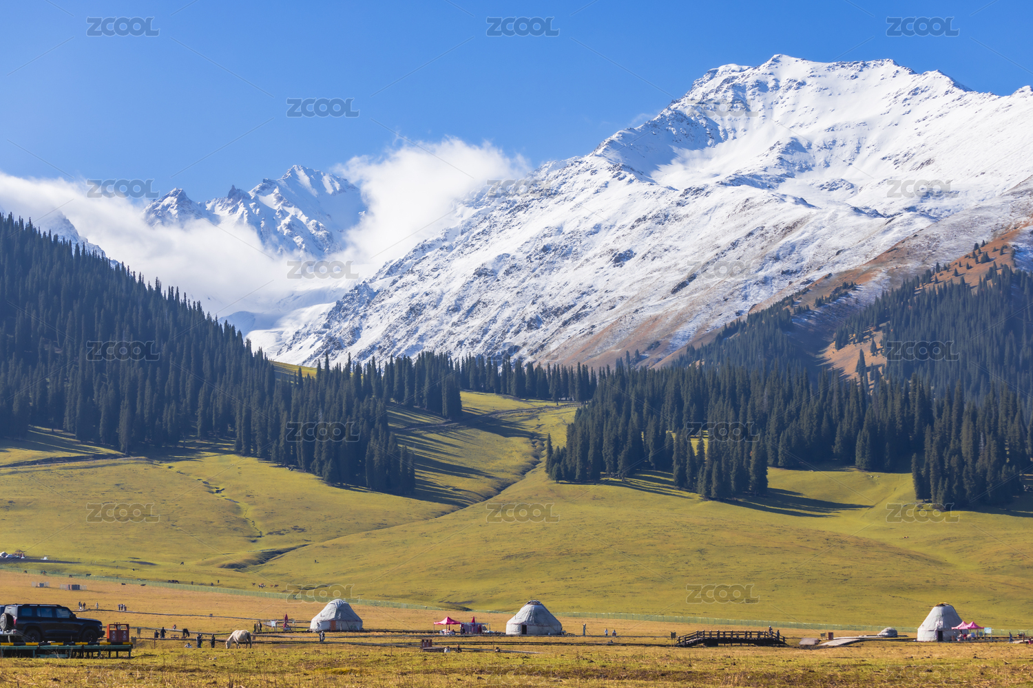 中国,新疆,伊犁,那拉提草原,空中草原,天山山脉,天山,雪山,露营,山脉