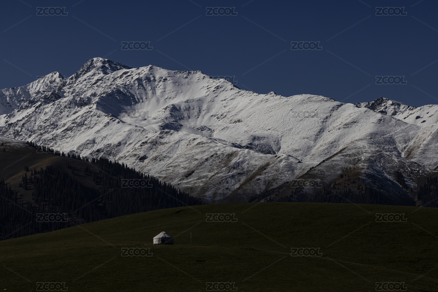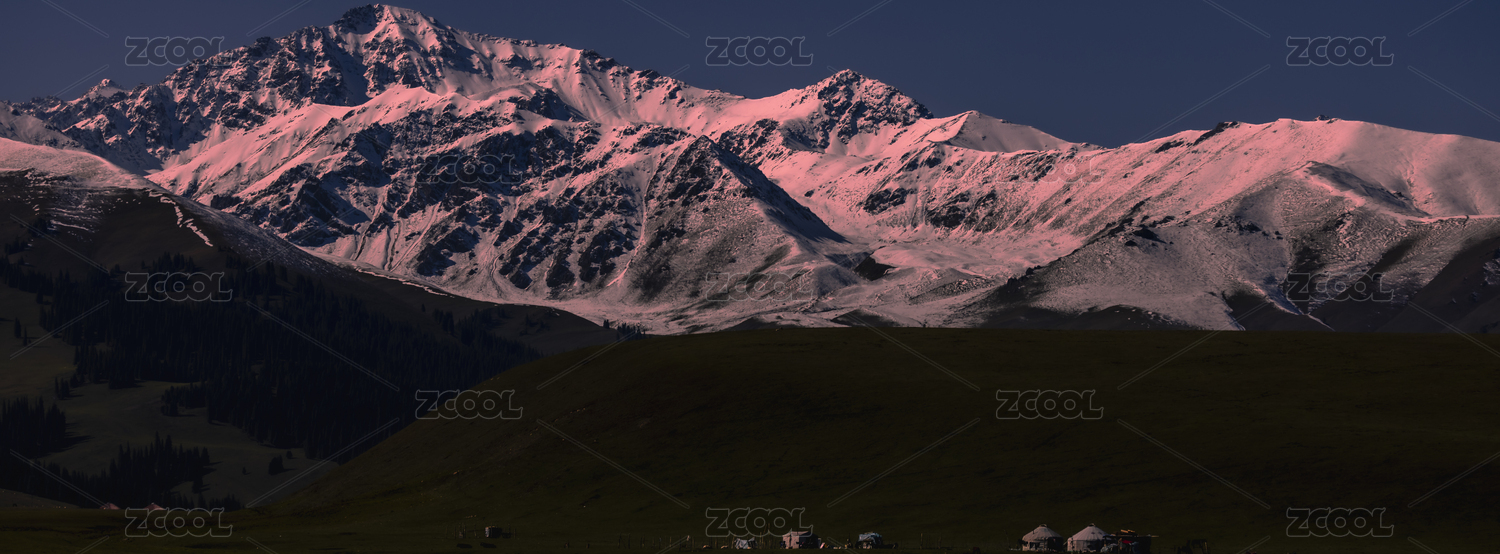 中国新疆伊犁琼库什台雪山森林草原风光