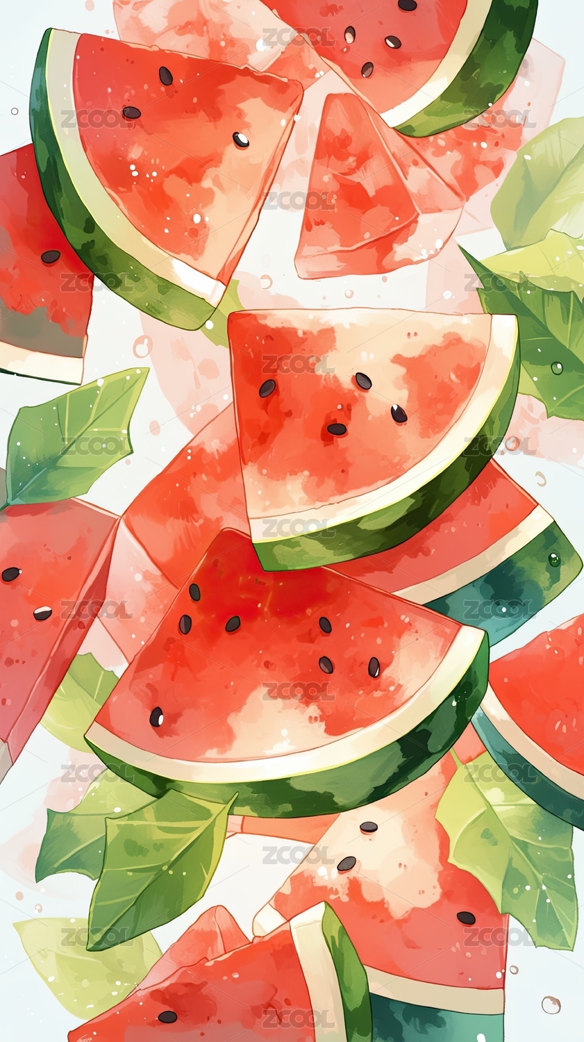 手绘水彩写实风格水果夏日清爽西瓜素材插画