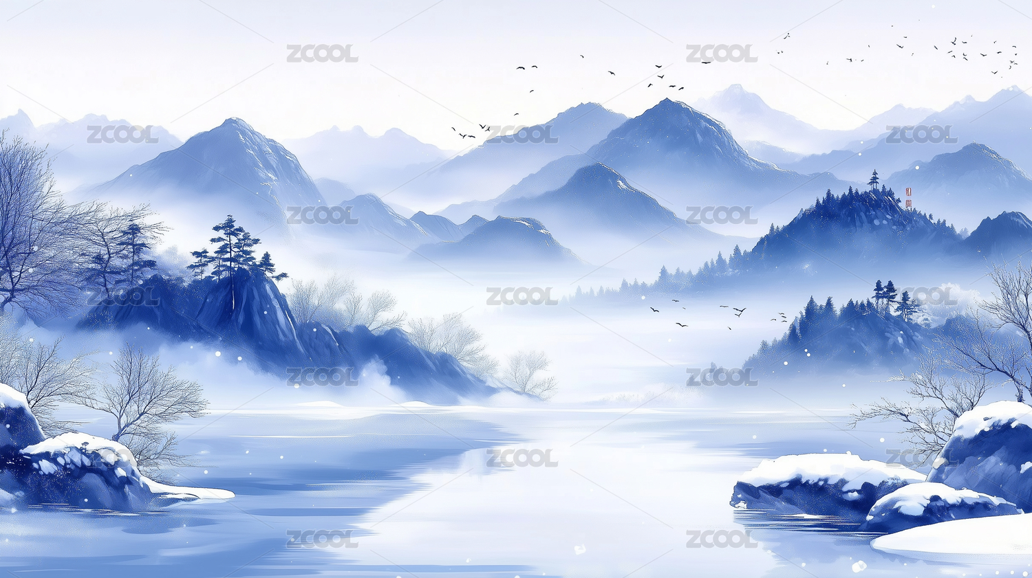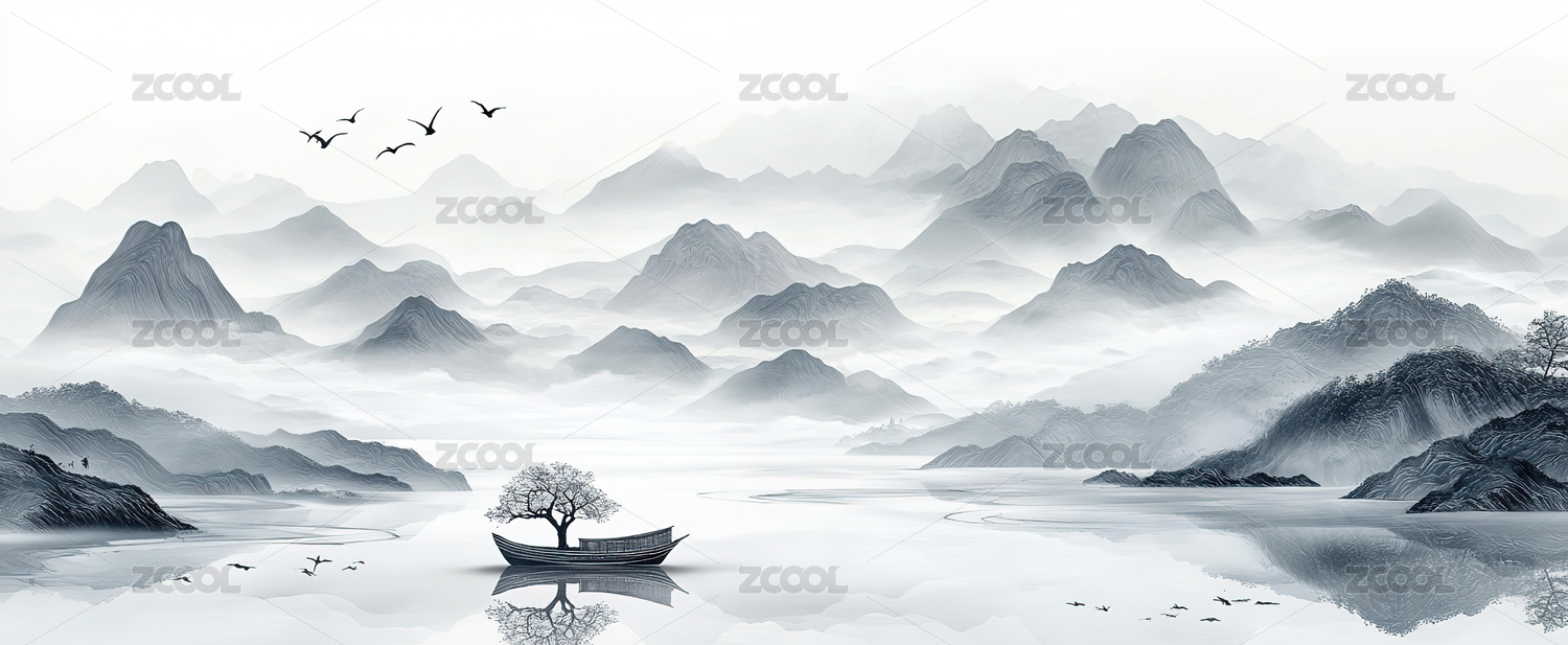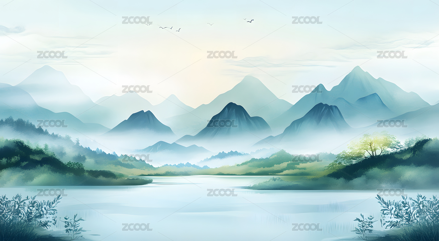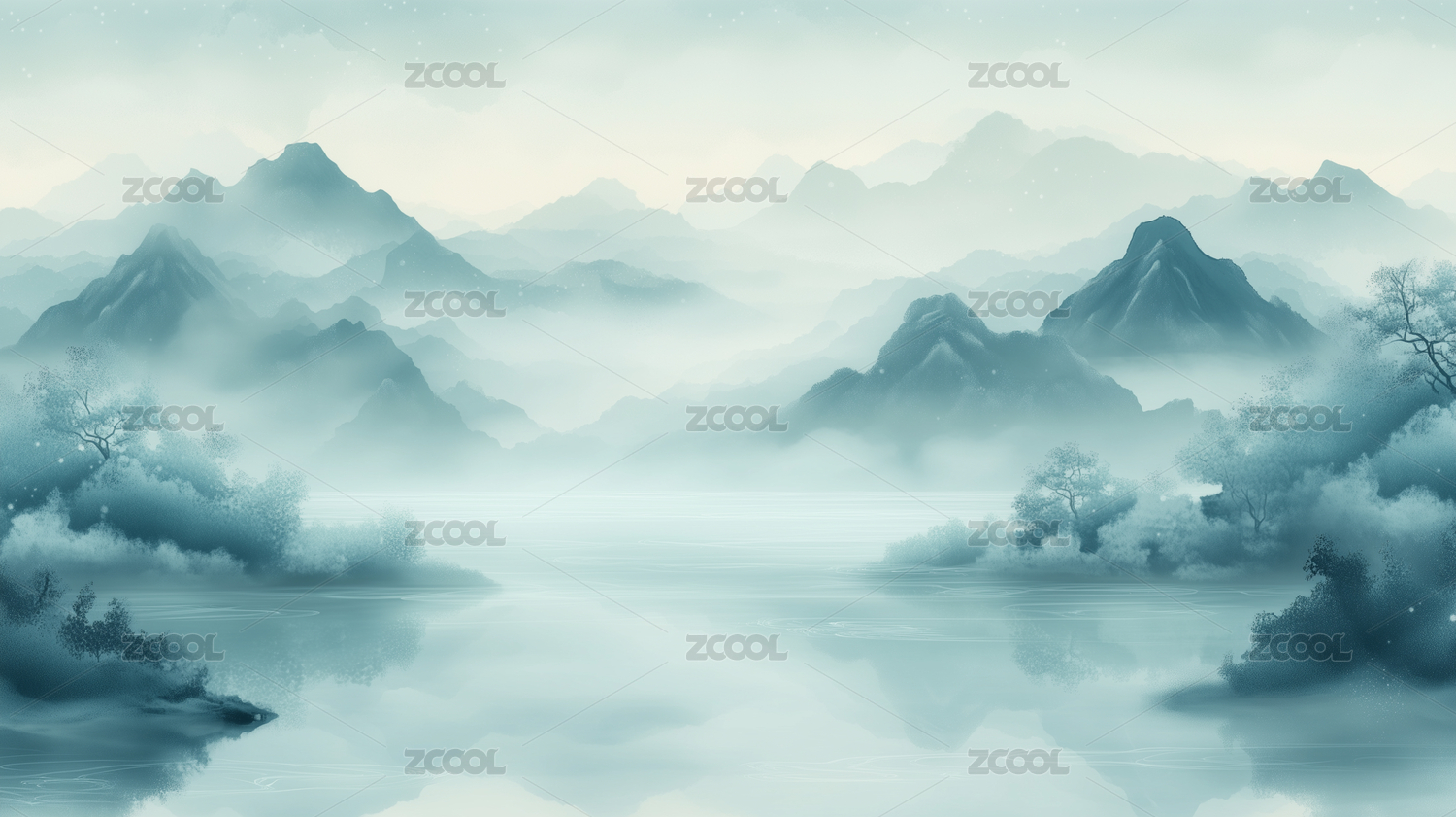 清新,淡雅,山峦,水墨画,树木,山水画,中国画,传统,宁静,江南