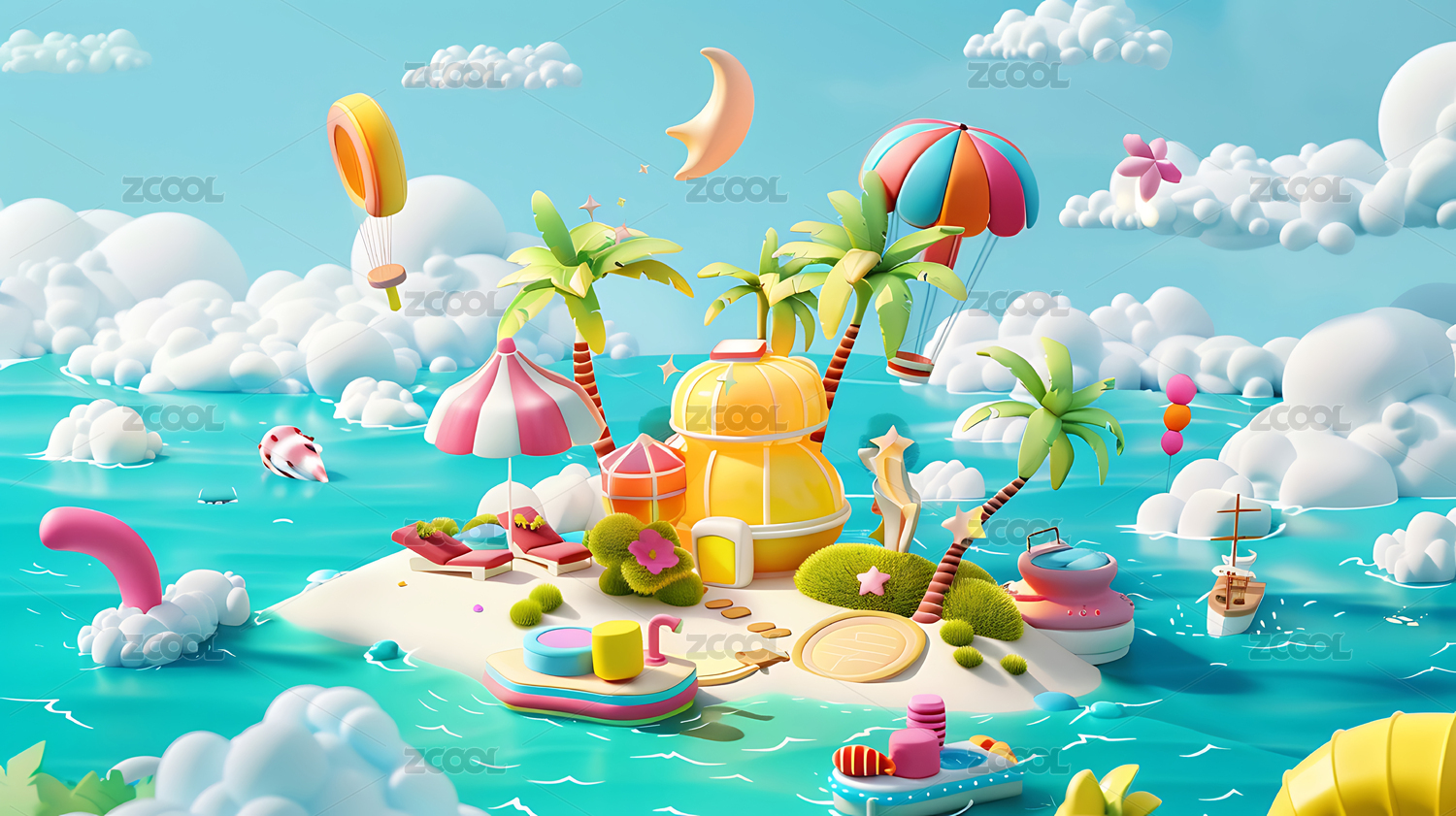夏日,沙滩,清凉,海岛,避暑,游泳,海滩,夏天,清新,出游