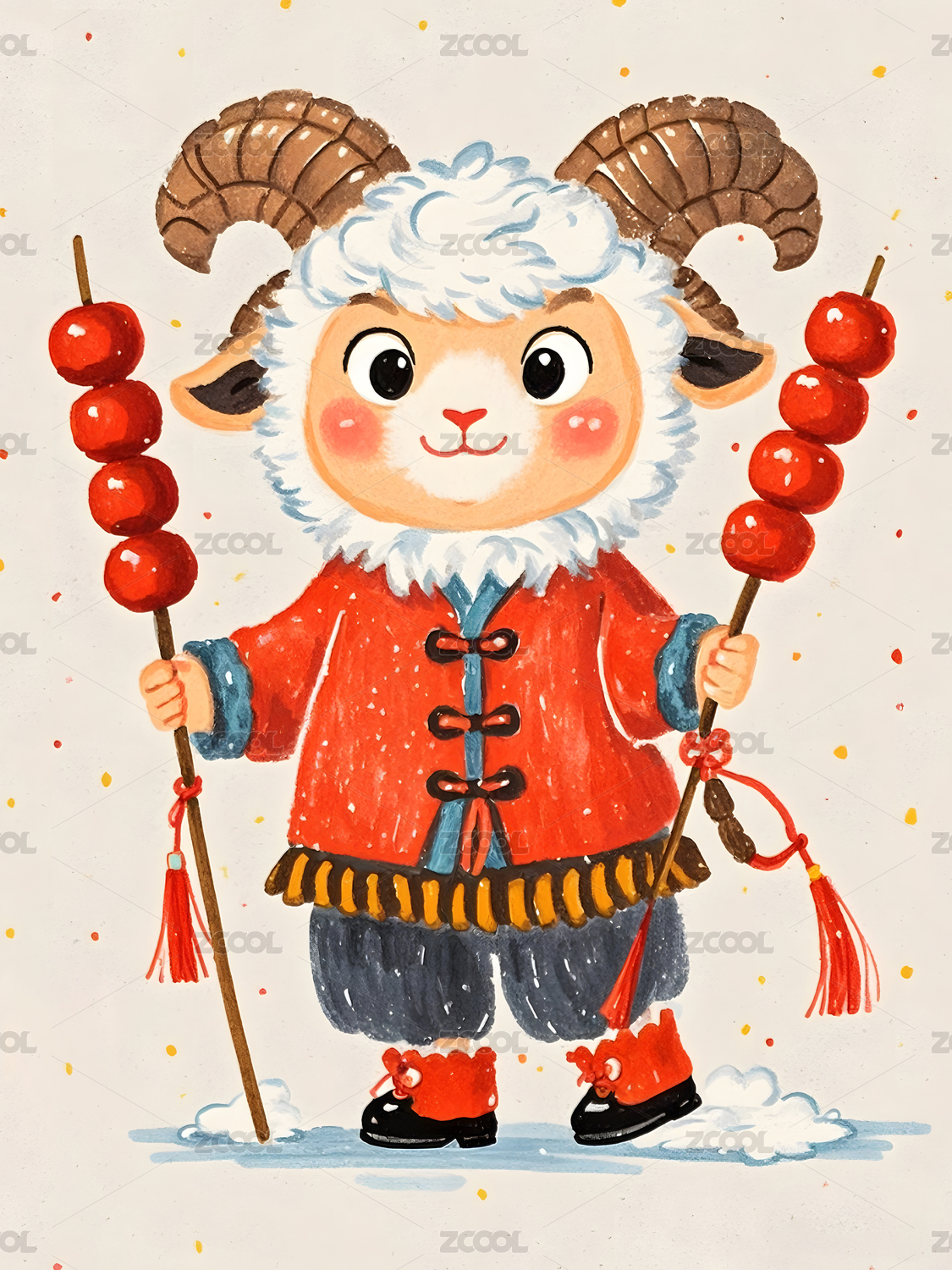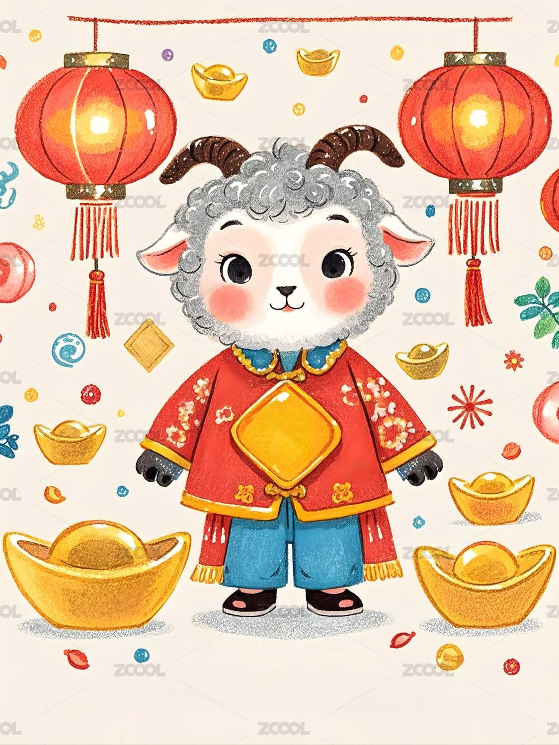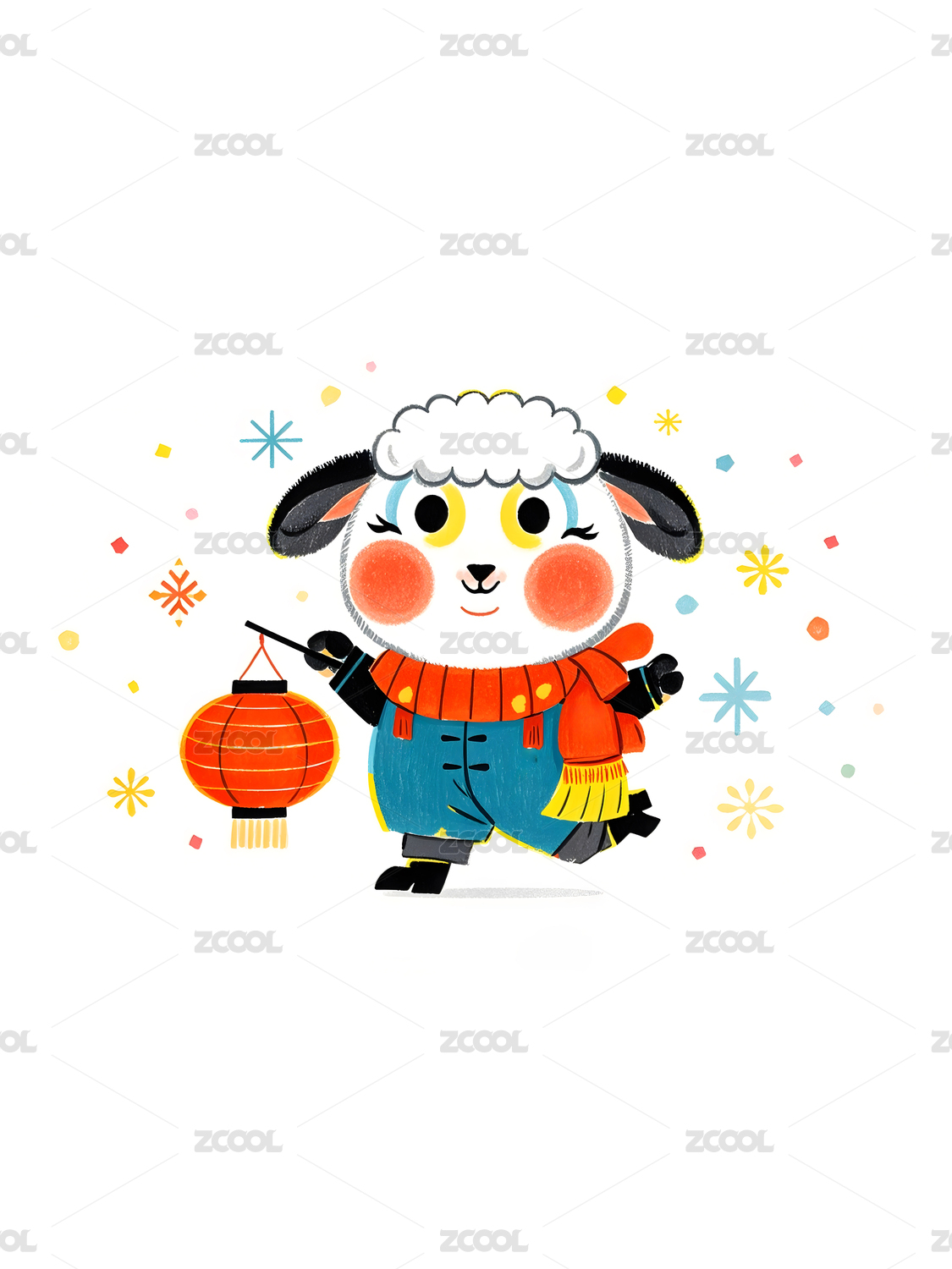 中国风,喜庆,可爱,卡通,羊,卡通羊,新年,春节,插画,绘画