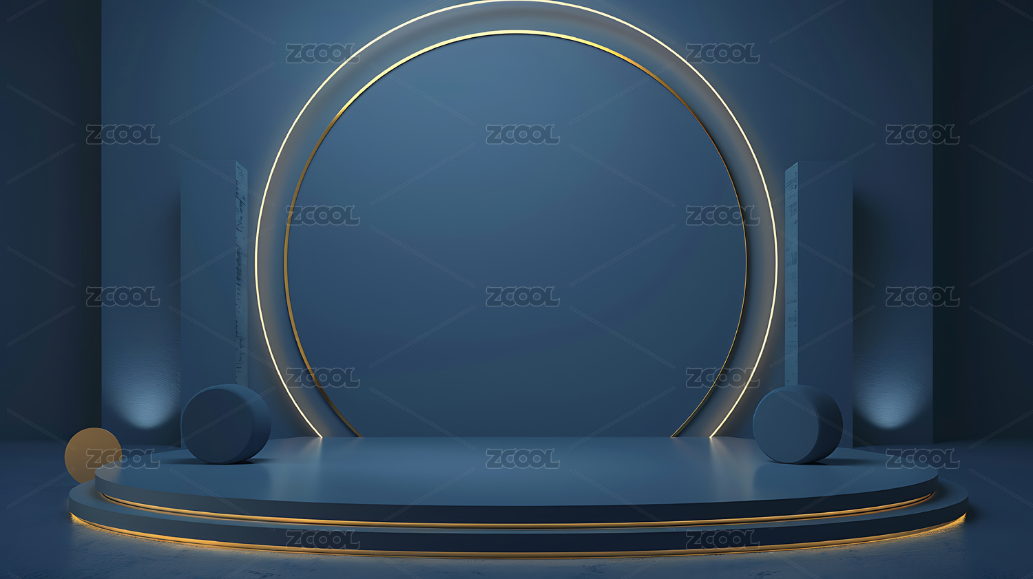 梦幻蓝色几何展台背景图