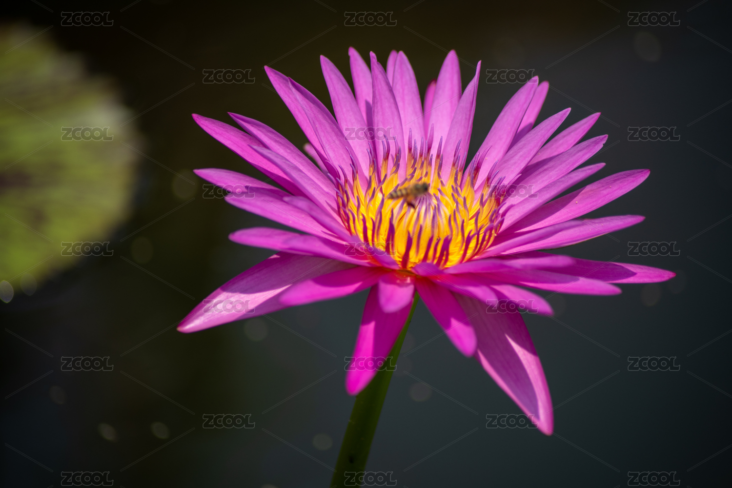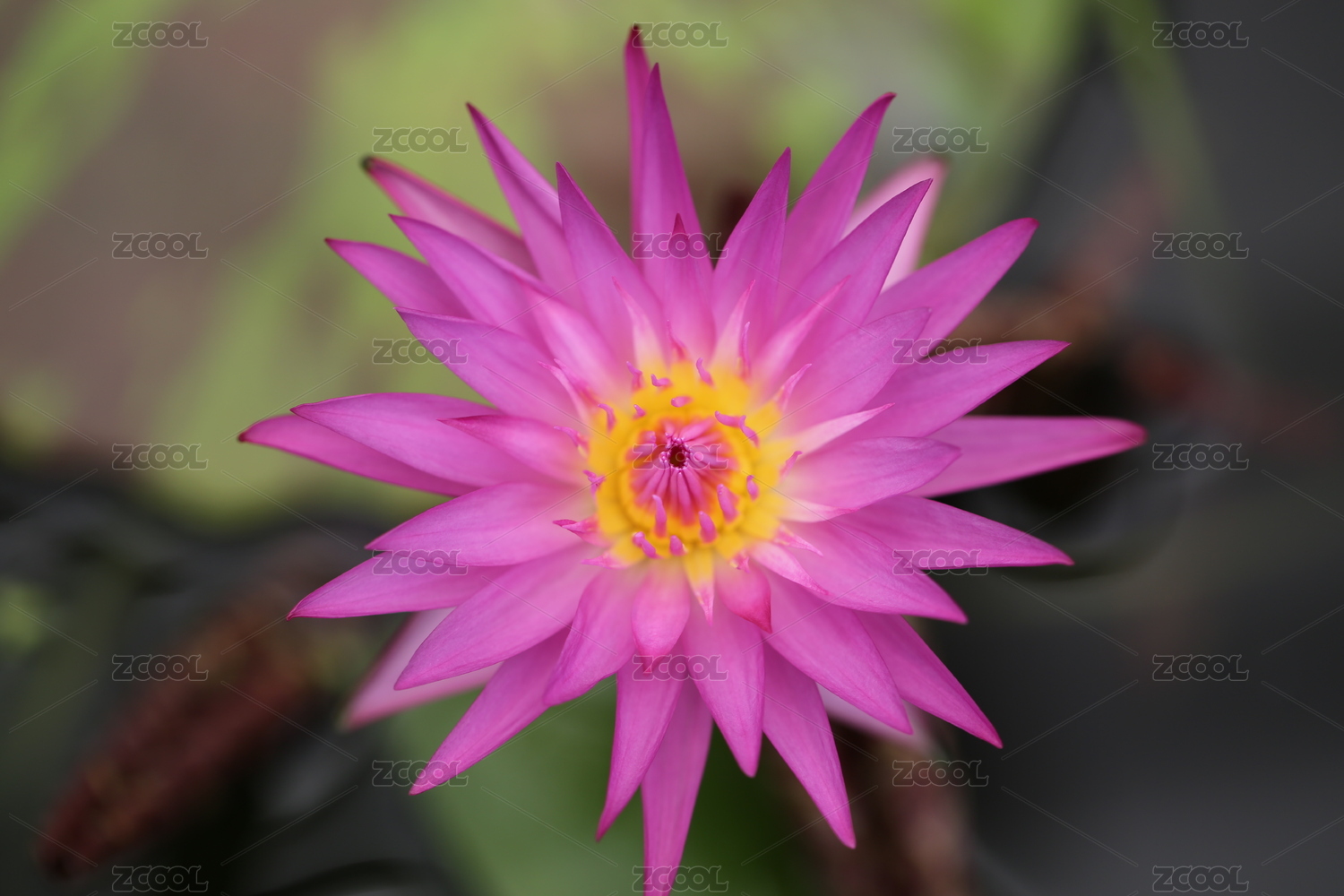 春天公园里的莲花池里盛开的紫色睡莲特写